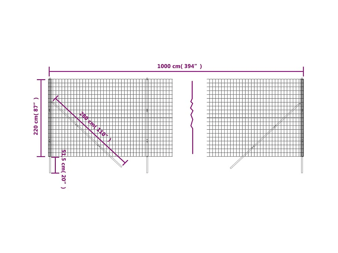Clôture en treillis métallique anthracite 2,2x10 m FR846519