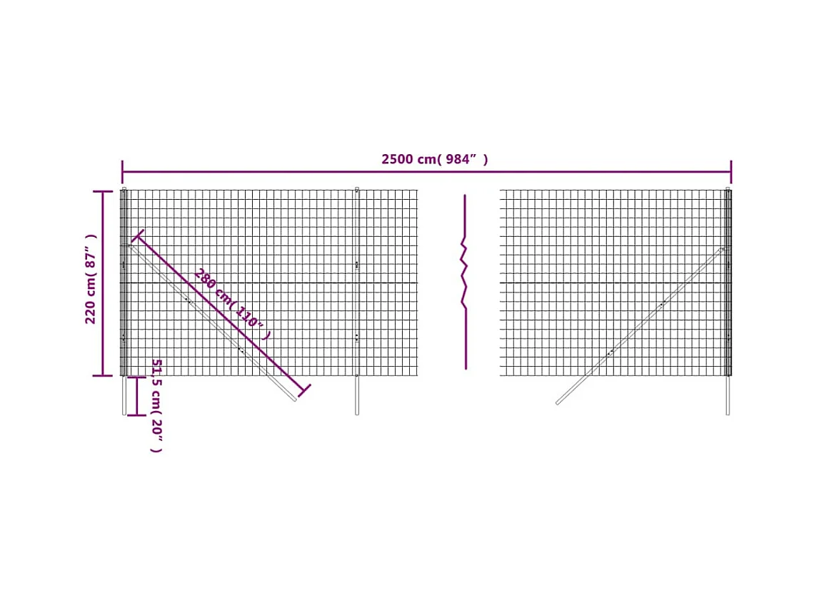 Clôture en treillis métallique anthracite 2,2x25 m FR751641