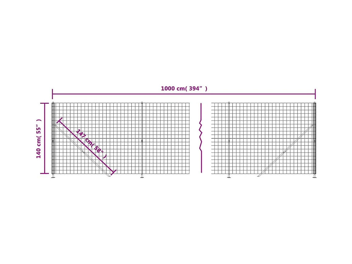 Clôture en treillis métallique et ancrage anthracite 1,4x10 m