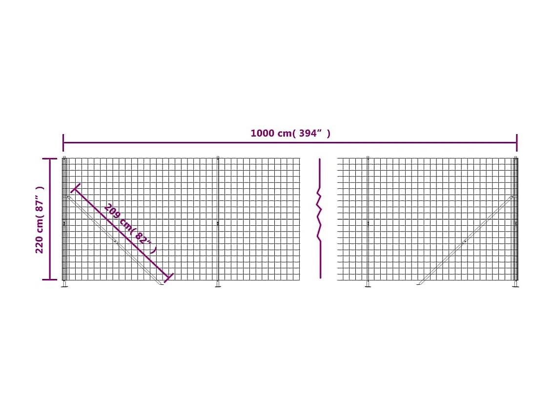 Clôture en treillis métallique avec bride vert 2,2x10 m