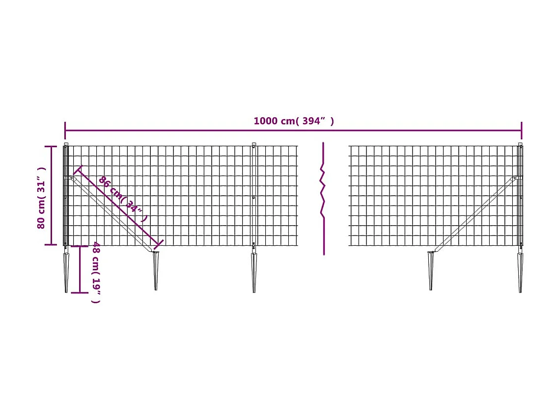 Clôture en treillis métallique et ancrage anthracite 0,8x10 m FR591325