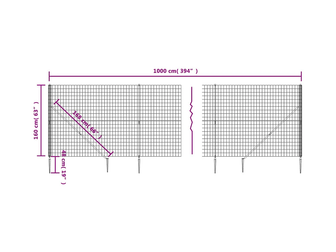 Clôture en treillis métallique et ancrage anthracite 1,6x10 m