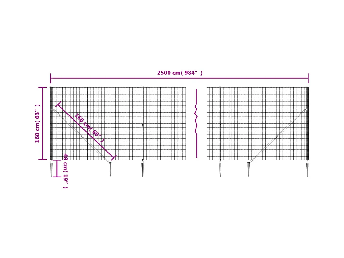 Clôture en treillis métallique et ancrage anthracite 1,6x25 m