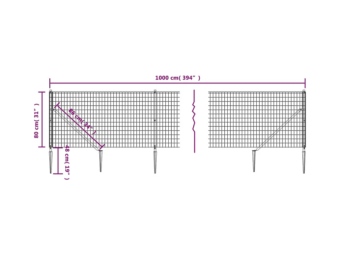 Clôture en treillis métallique et piquet d'ancrage vert 0,8x10m FR924480
