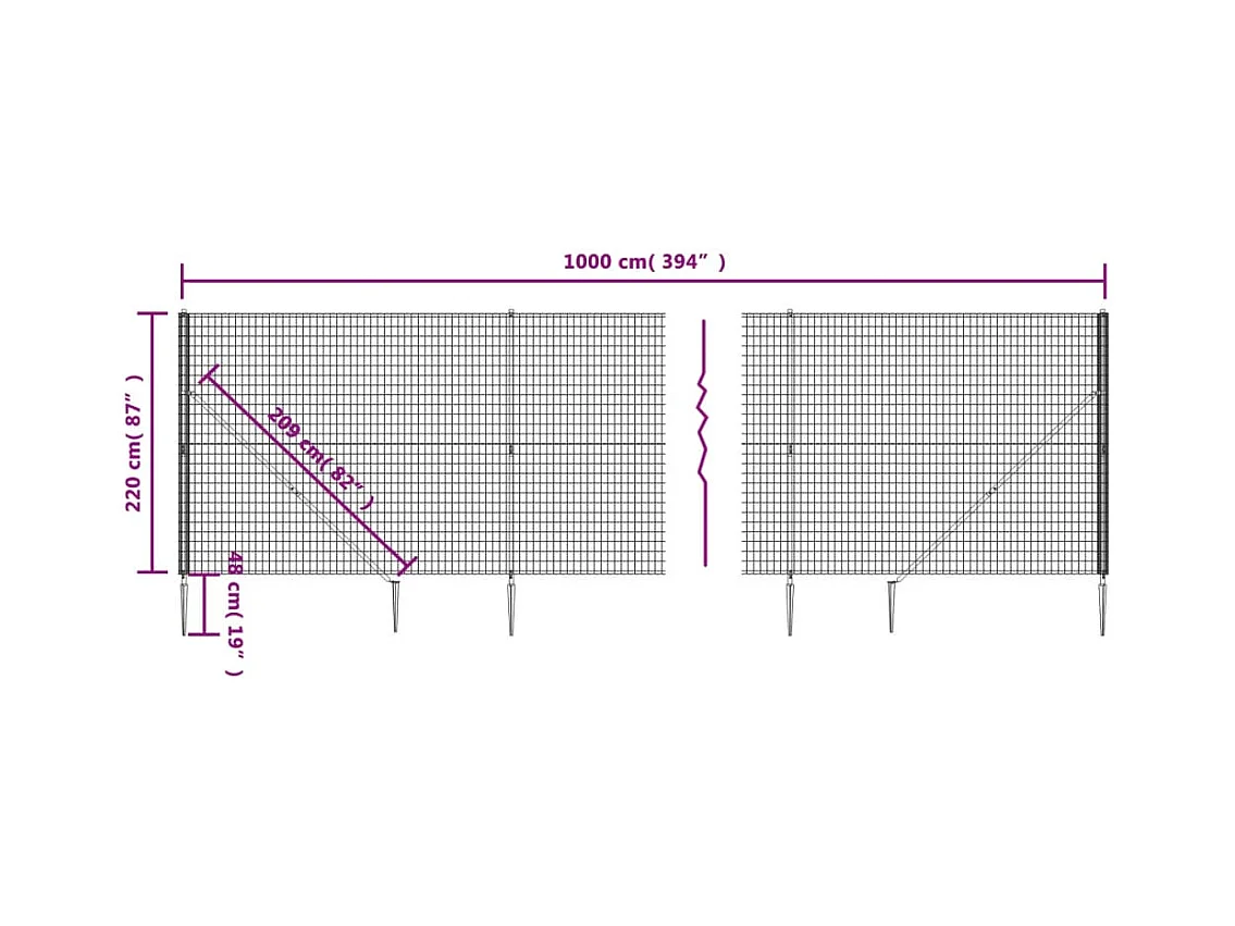 Clôture en treillis métallique et piquet d'ancrage vert 2,2x10m