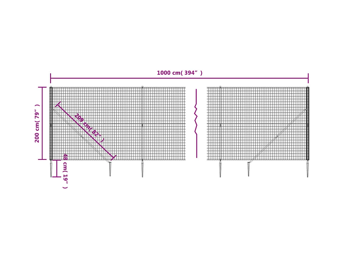 Clôture en treillis métallique et piquet d'ancrage vert 2x10m
