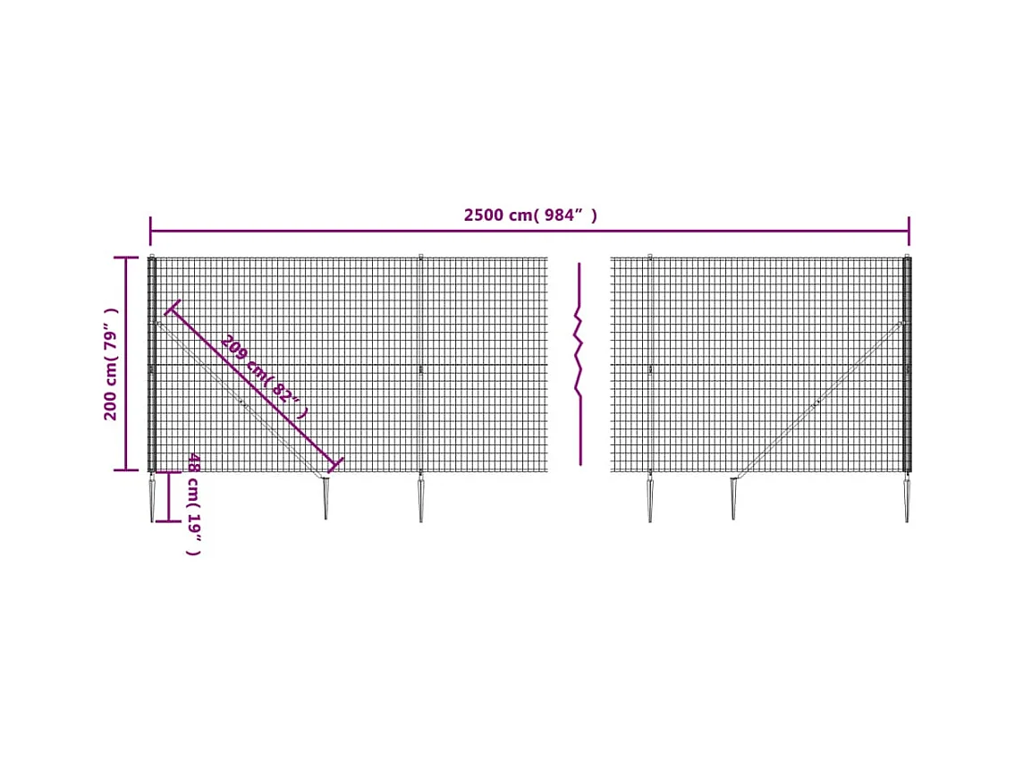Clôture en treillis métallique et piquet d'ancrage vert 2x25 m