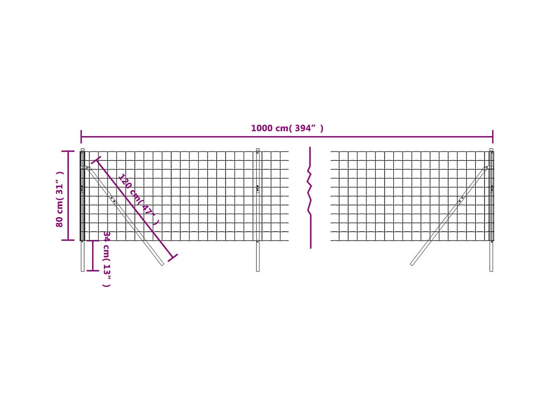 Clôture en treillis métallique et piquet d'ancrage vert 0,8x10m
