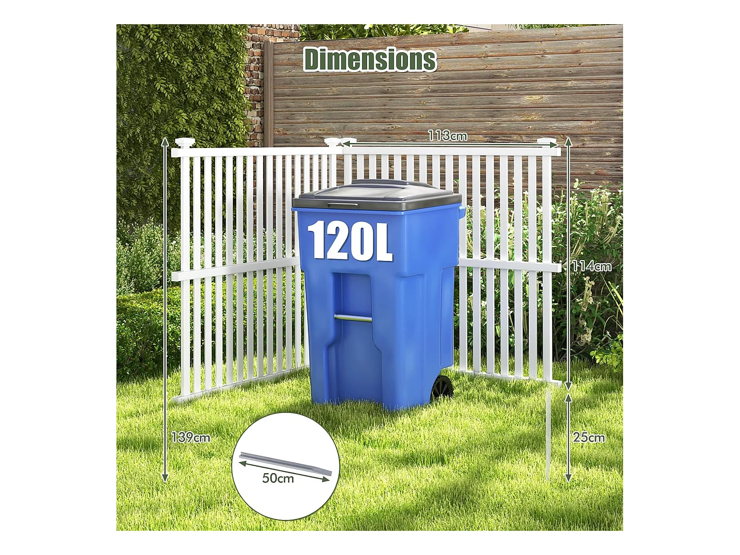 Clôture Privée Extérieure pour Climatiseur 113 x 114 cm, Panneaux de Clôture avec Piquets en Métal pour Poubelle et Equipement de Piscine pour Extérieur, Blanc