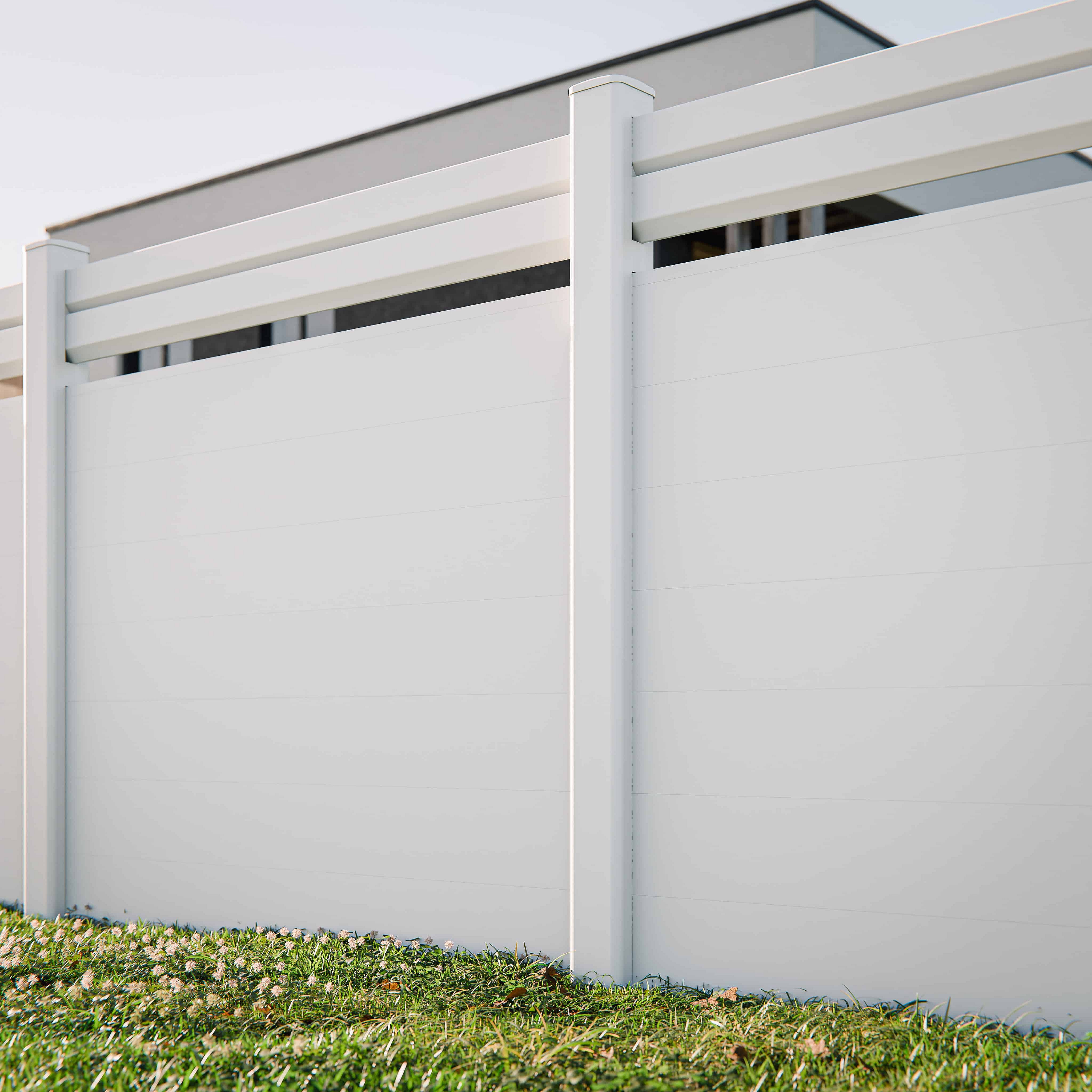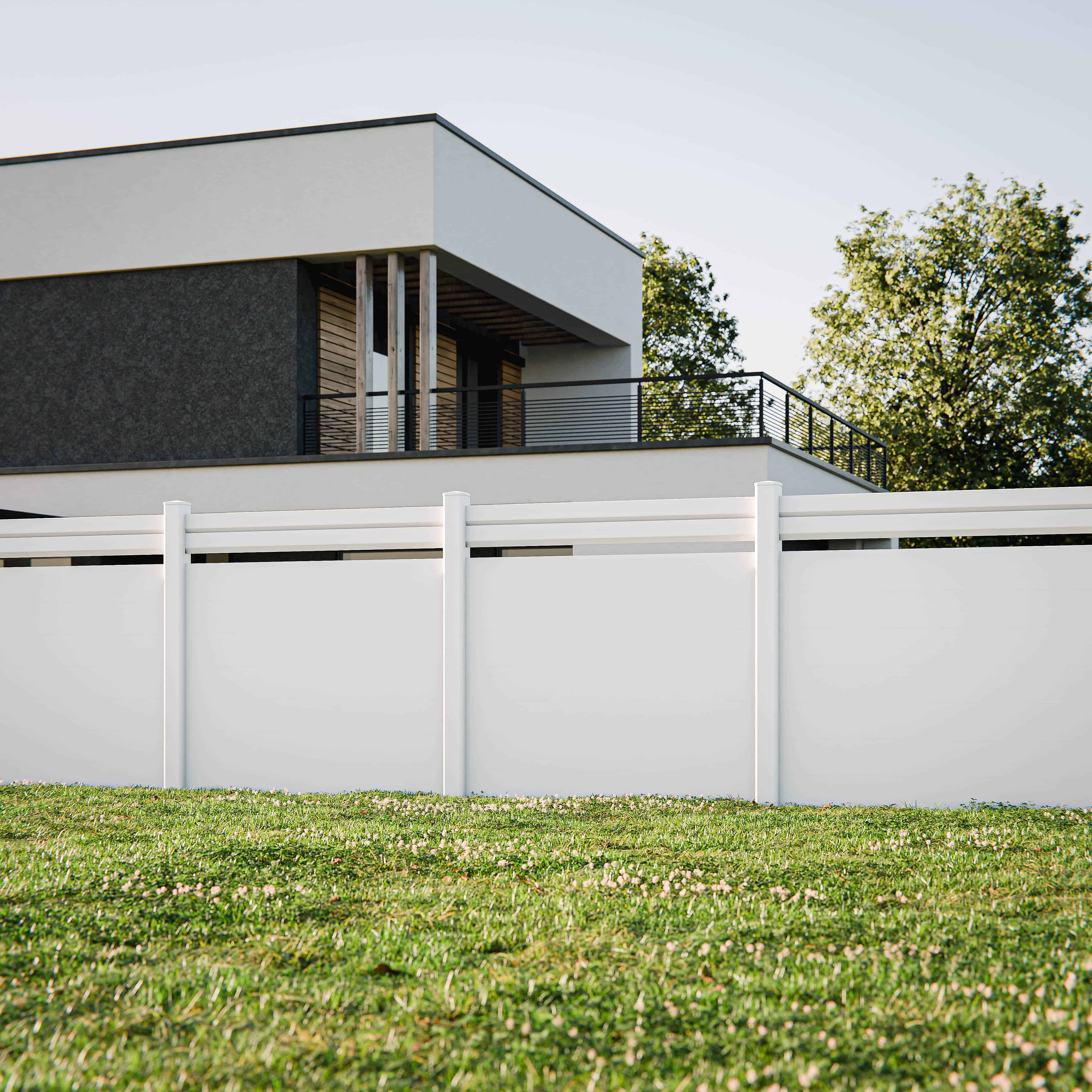 Kit Clôture PRO PVC Blanc H. 180 cm x L. 11.30 m - 2 Lisses claire-voie + 7 Soubassements