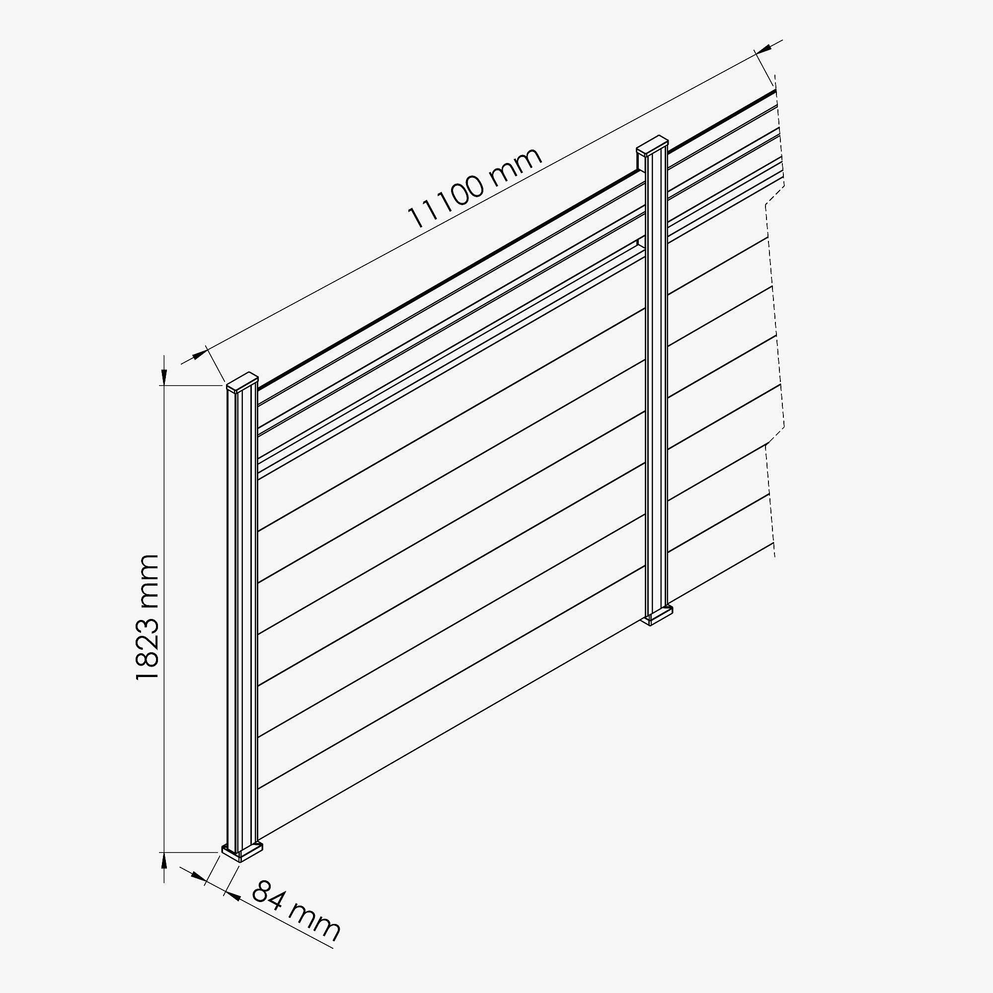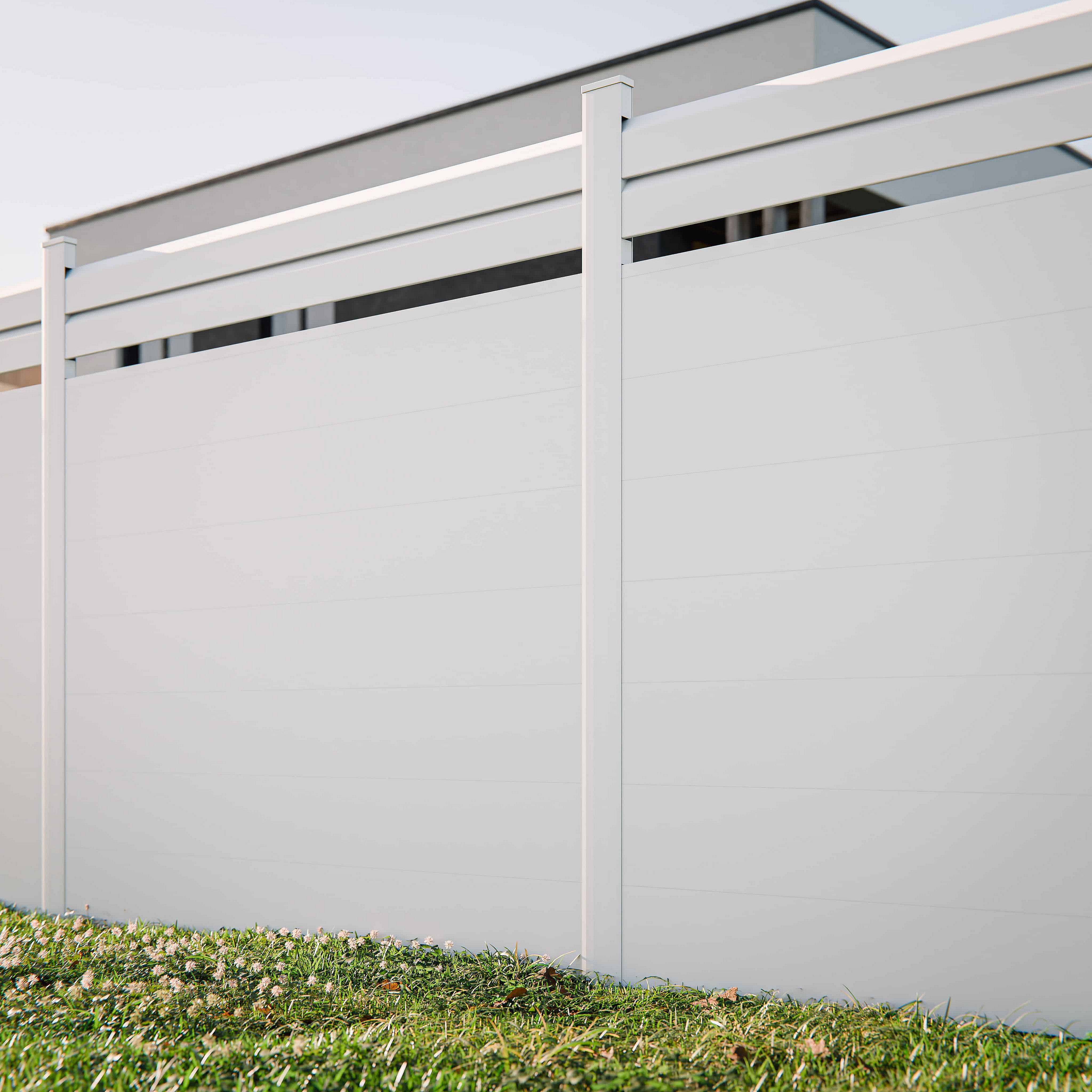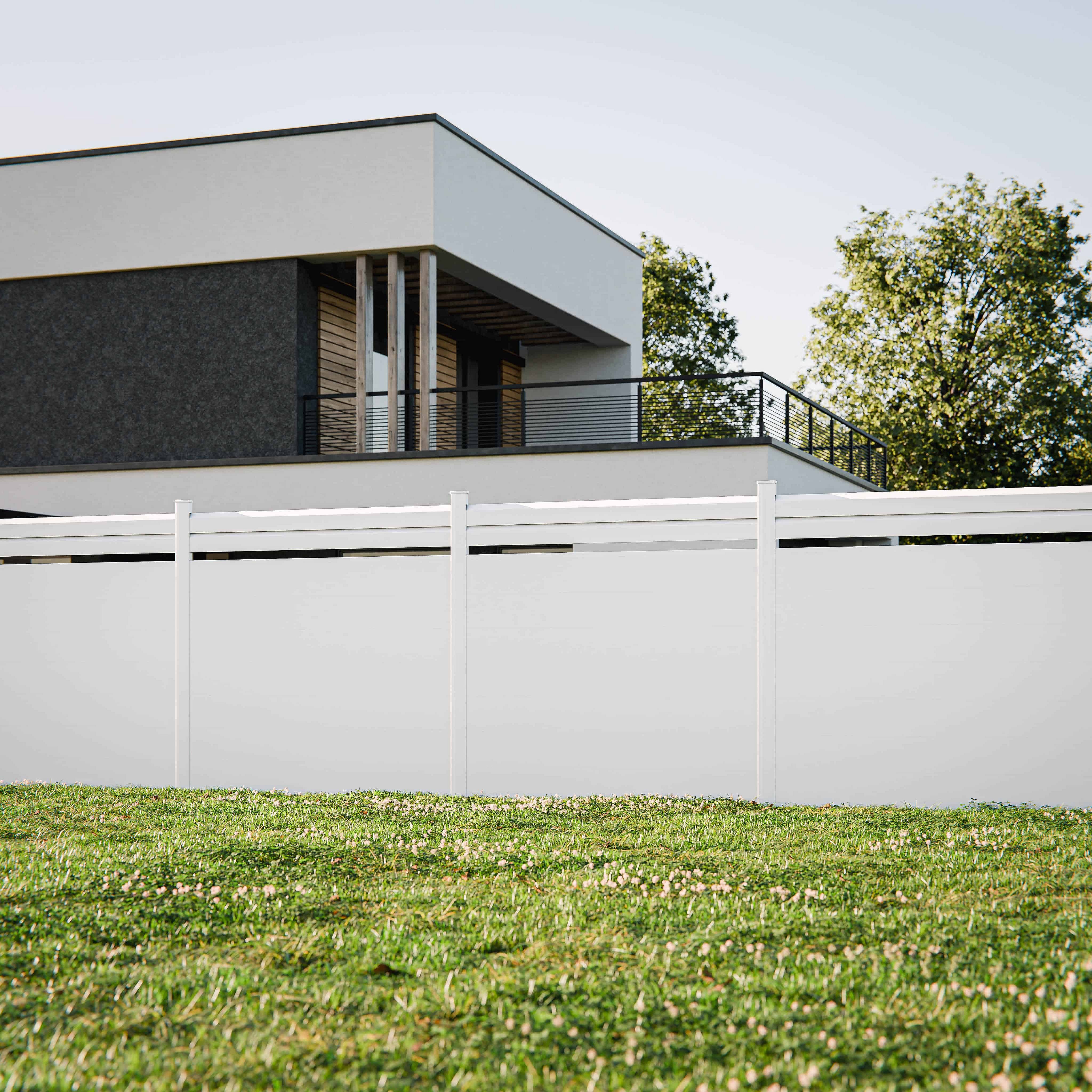 Kit Clôture SLIM PVC Blanc H. 180 cm x L. 11.10 m - 2 Lisses claire-voie + 7 Soubassements
