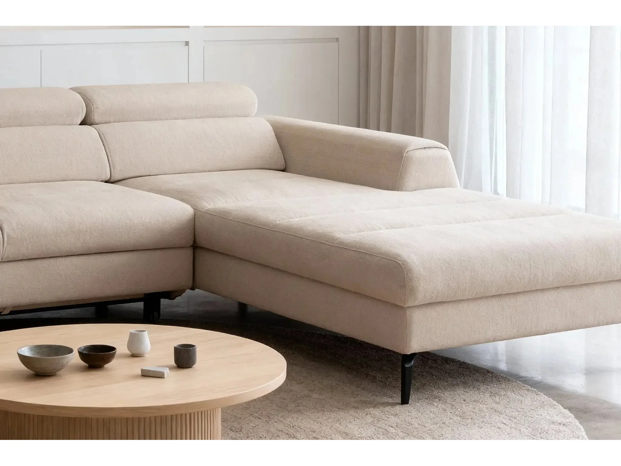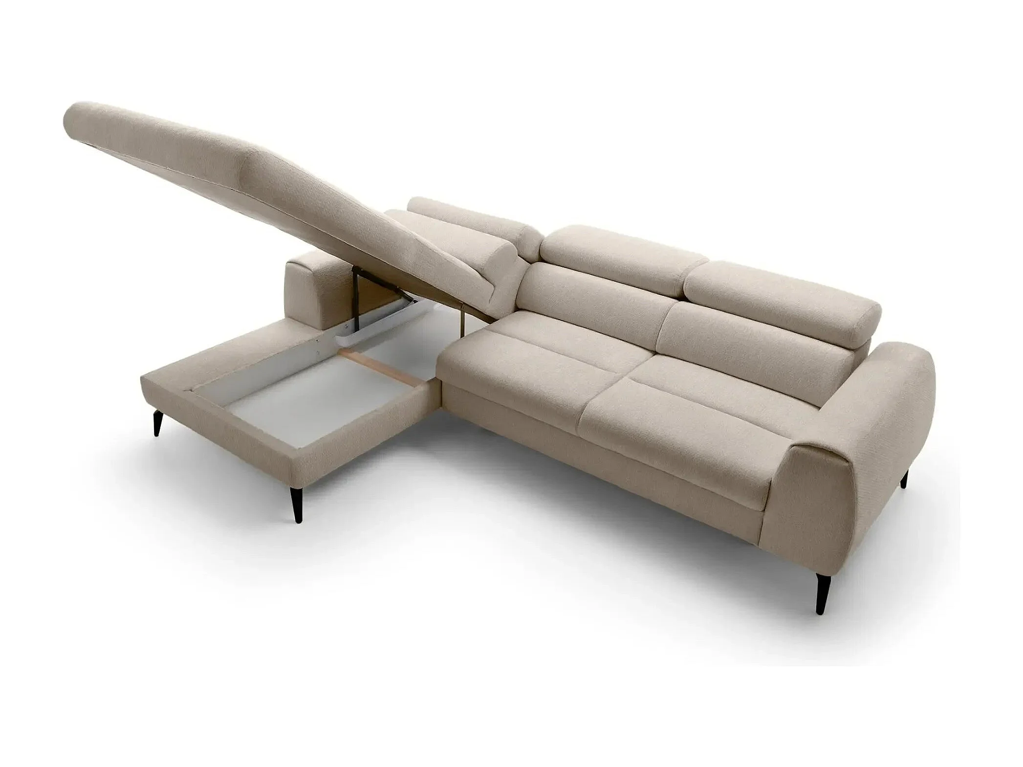 CLOVIS - Canapé d'angle convertible tissu chiné 4 places - Beige - Gauche