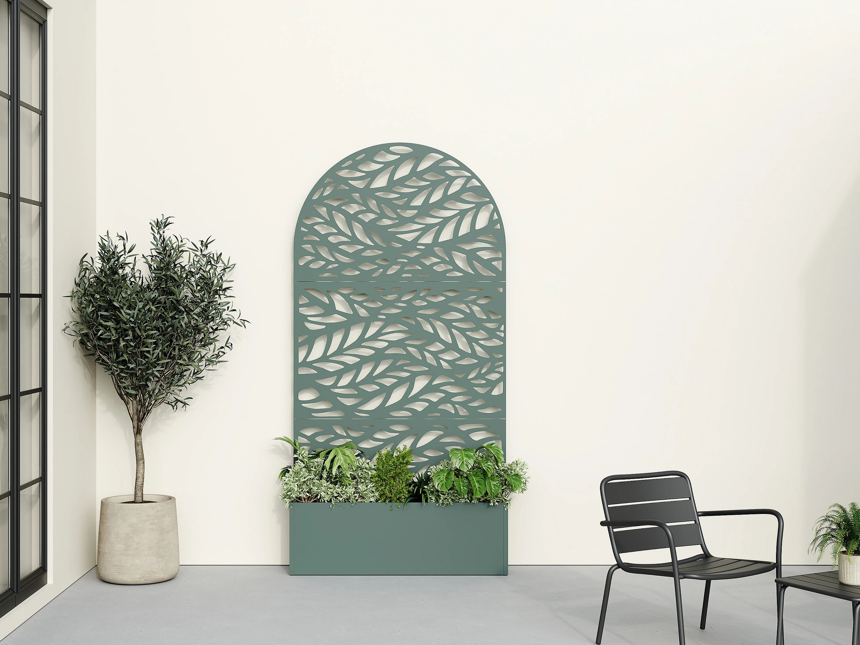 Jardinière à poser avec treillis à motif - L90 x P33 x H180 cm - Vert amande - CLYNEO