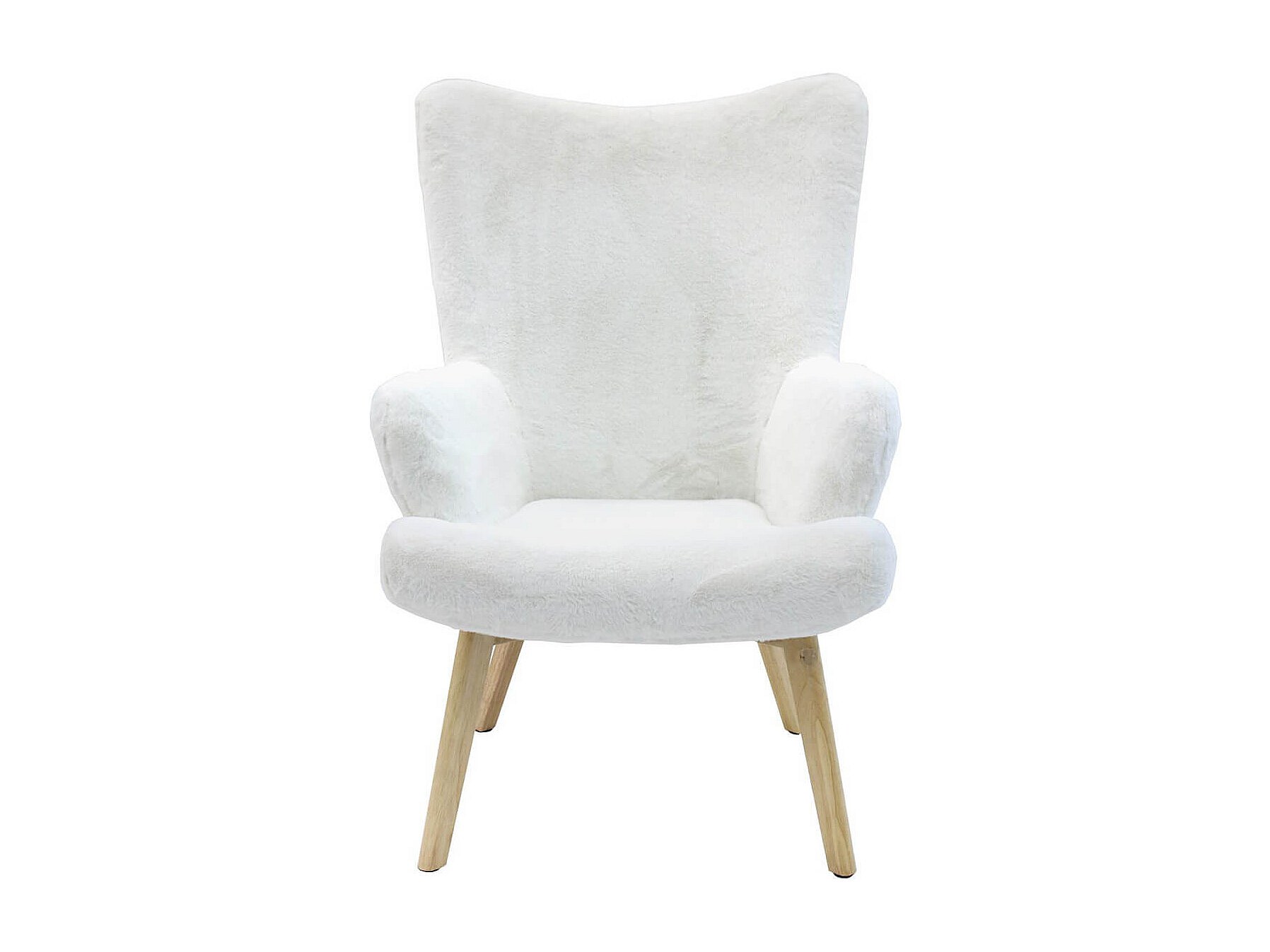 COCOON - Fauteuil Blanc Imitation Fourrure Pieds Bois