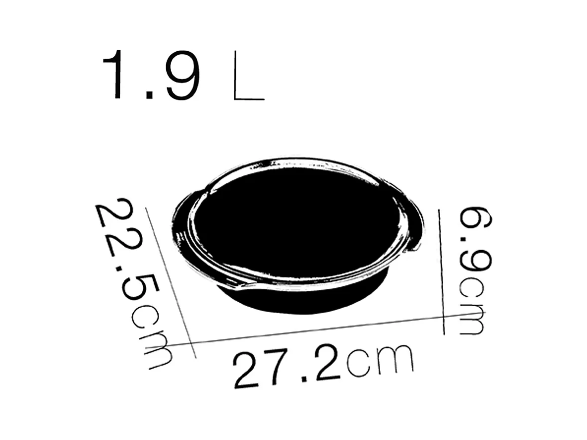 Cocotte ronde avec couvercle, casserole avec poignées en verre, capacité 1.9 L - Longueur 27.2 x Profondeur 22.5 x Hauteur 6.9 cm