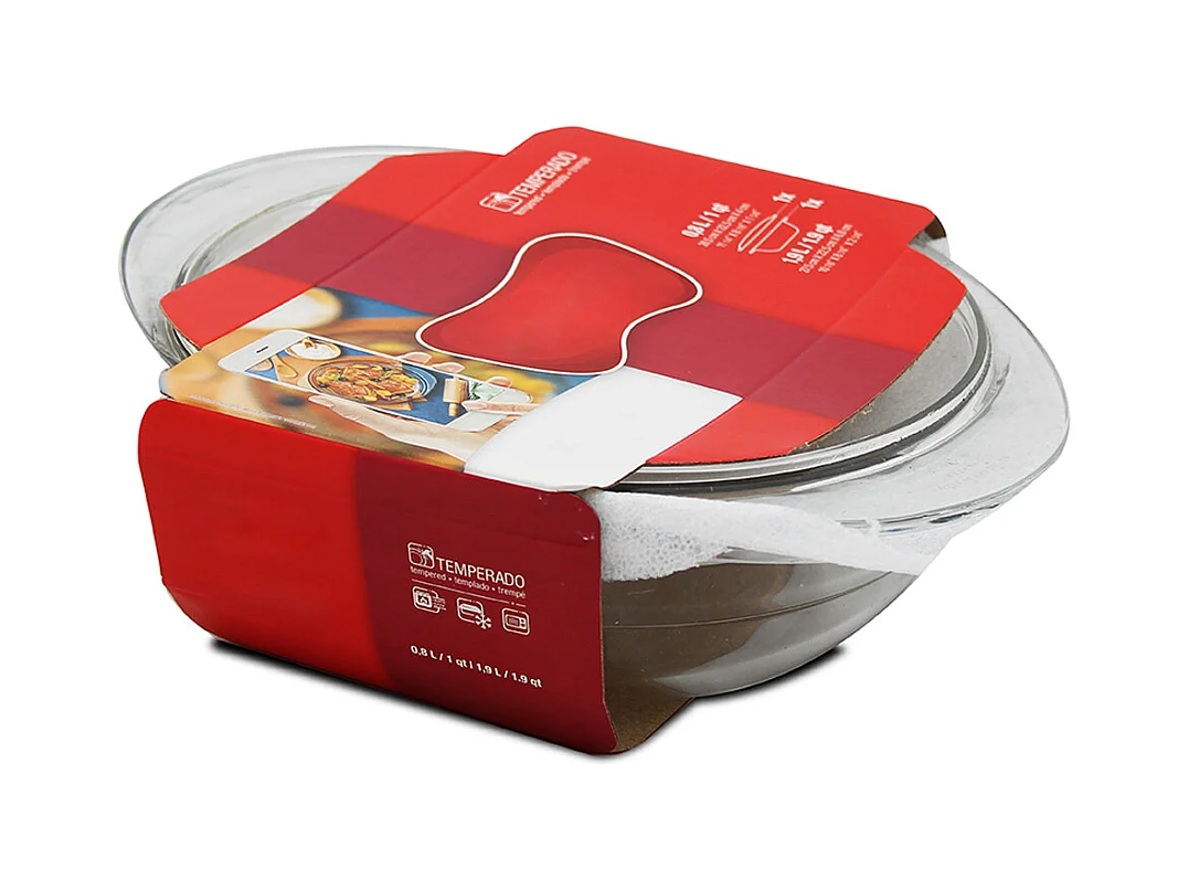 Cocotte ronde avec couvercle, casserole avec poignées en verre, capacité 0.7 L - Longueur 19.5 x Profondeur 15.9 x Hauteur 6.5 cm