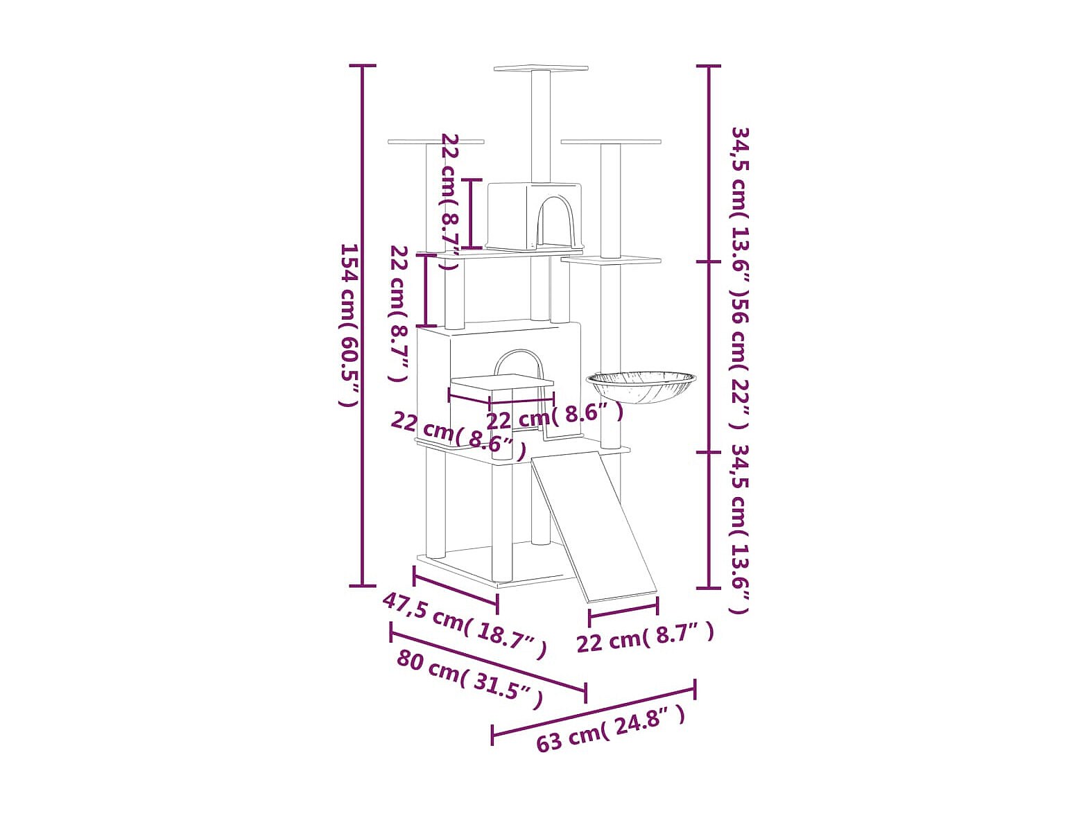 Arbre à chat avec griffoirs en sisal Gris foncé 154 cm OFR95286 BonneVie Meuble