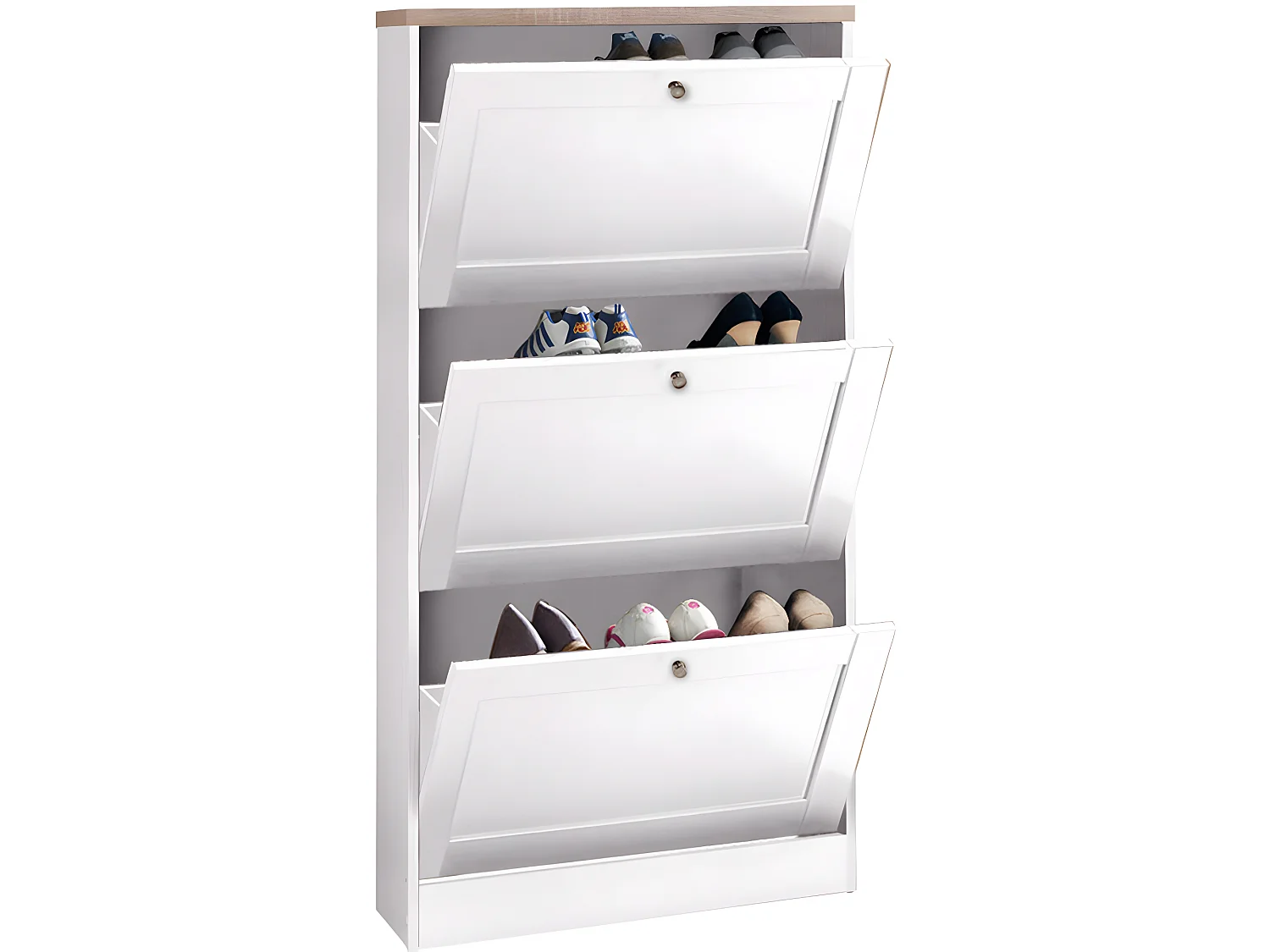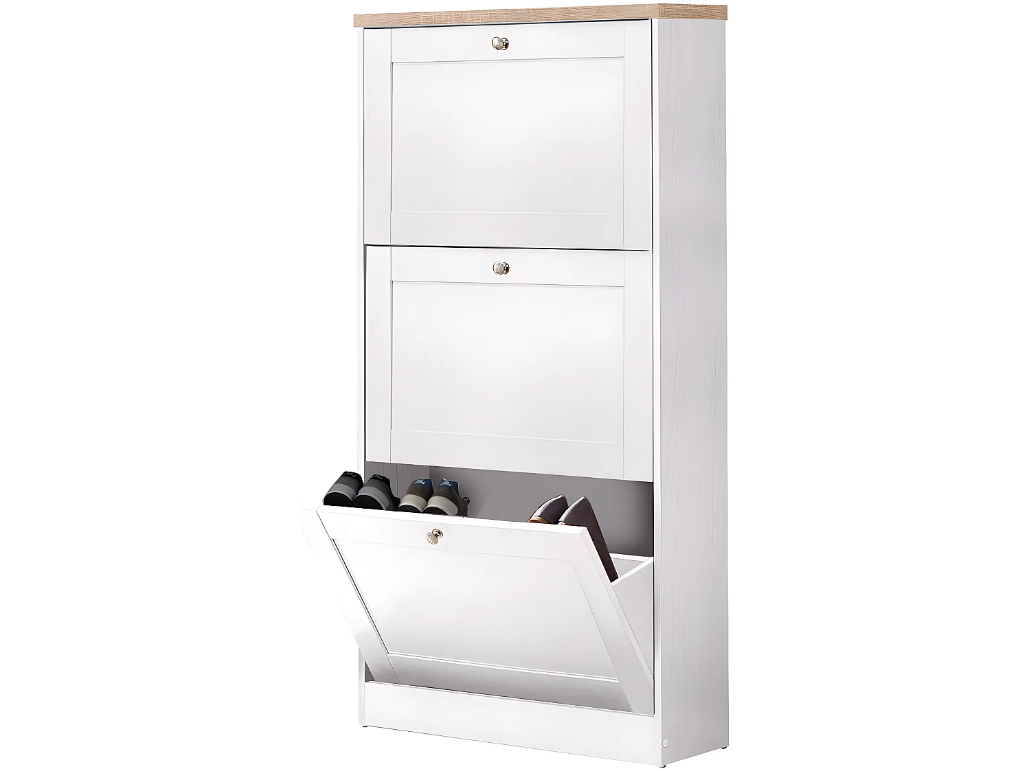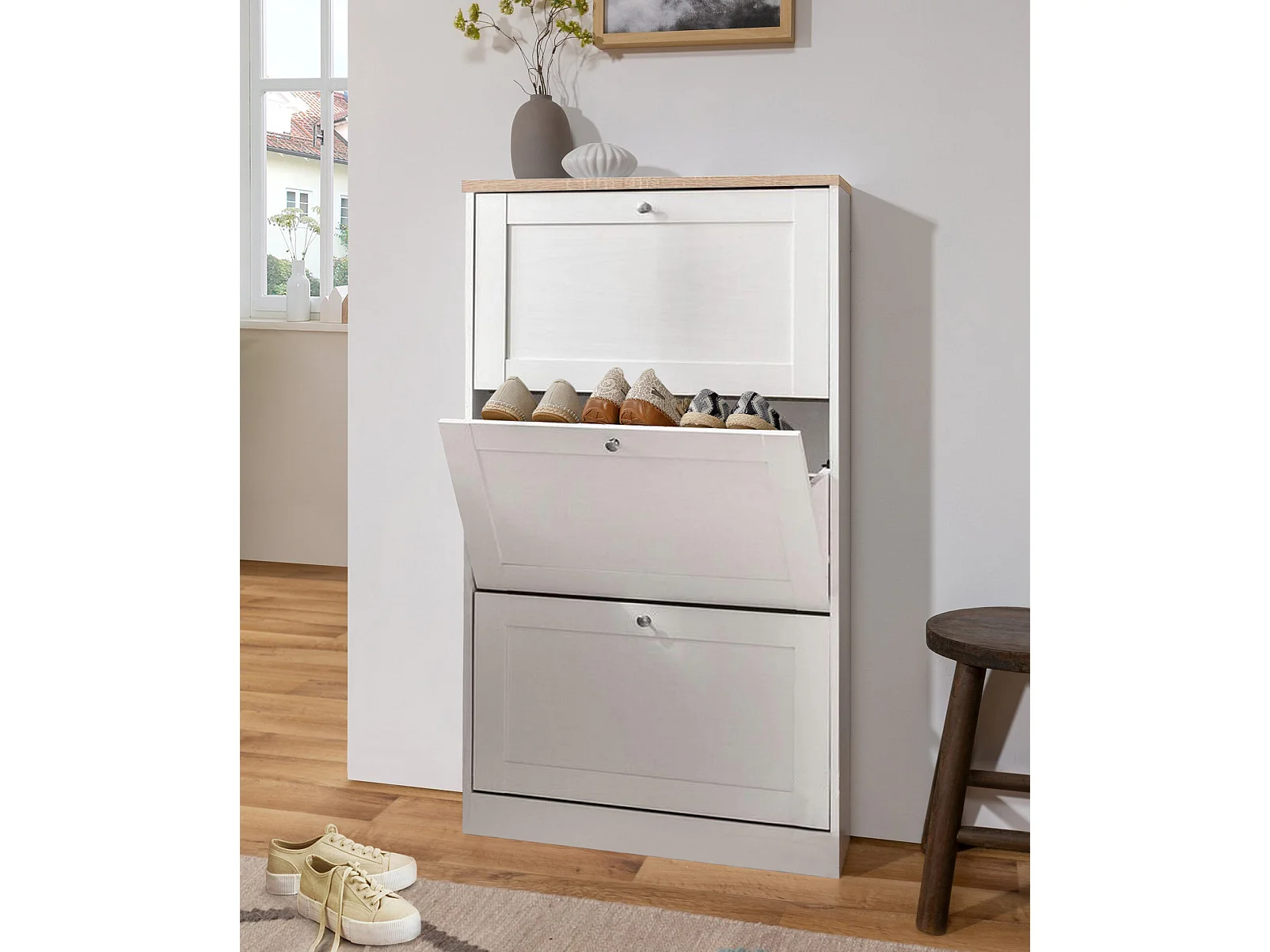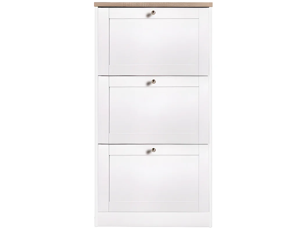 Heide | Coffre à chaussures à 3 portes battantes en effet bois blanc