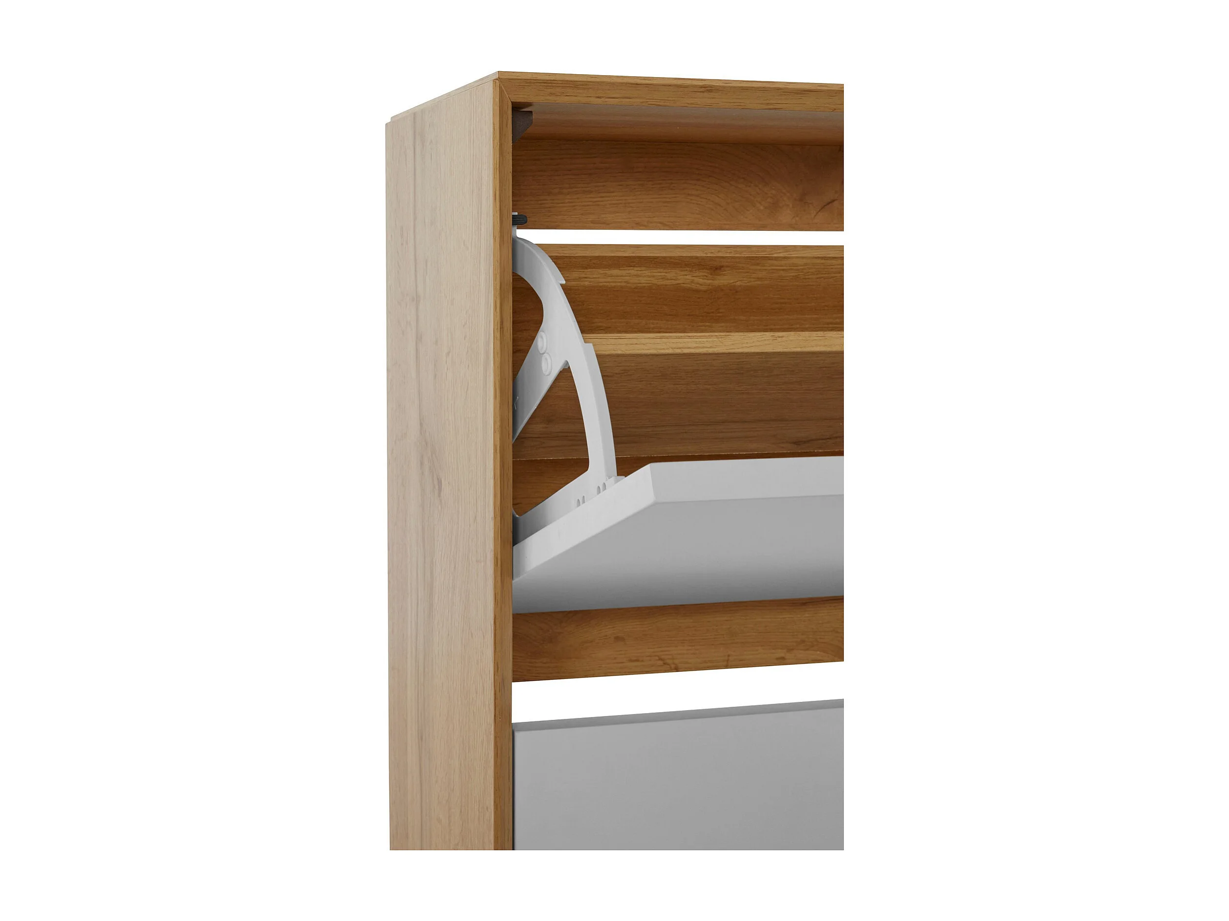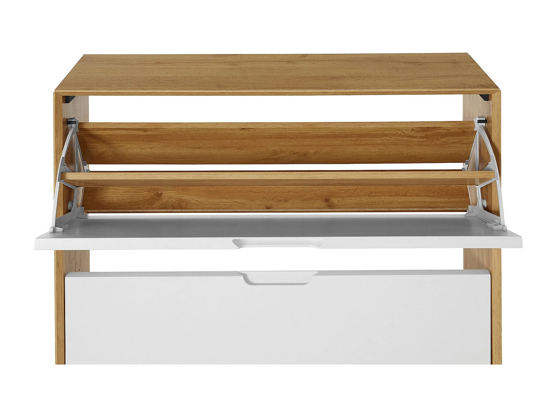 Ezra|Meuble à chaussures à 2 rabats en aggloméré chêne / blanc
