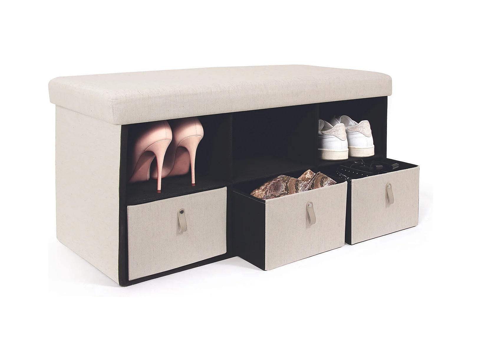 Coffre Banc Pliable Rangements Tissu Beige Beige