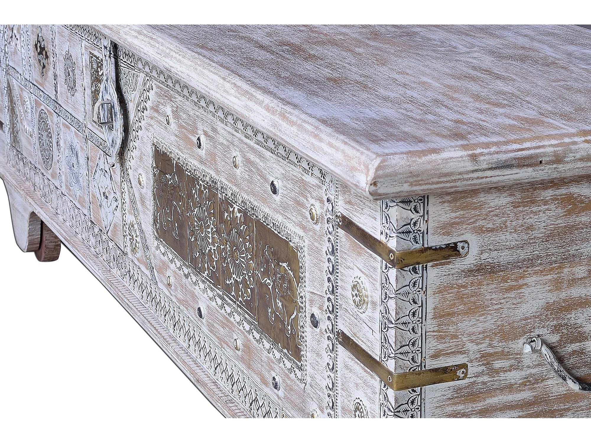 Coffre ancien en bois de manguier blanc