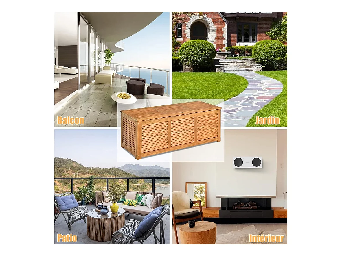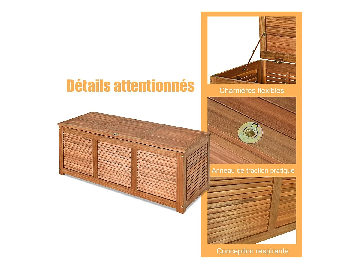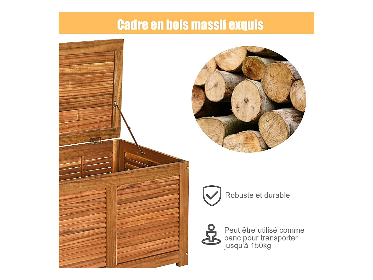 Coffre de Jardin en Bois d’Acacia certifié FSC 178L 120,5 x 44,5 x 44,5 cm Charge Max 150KG