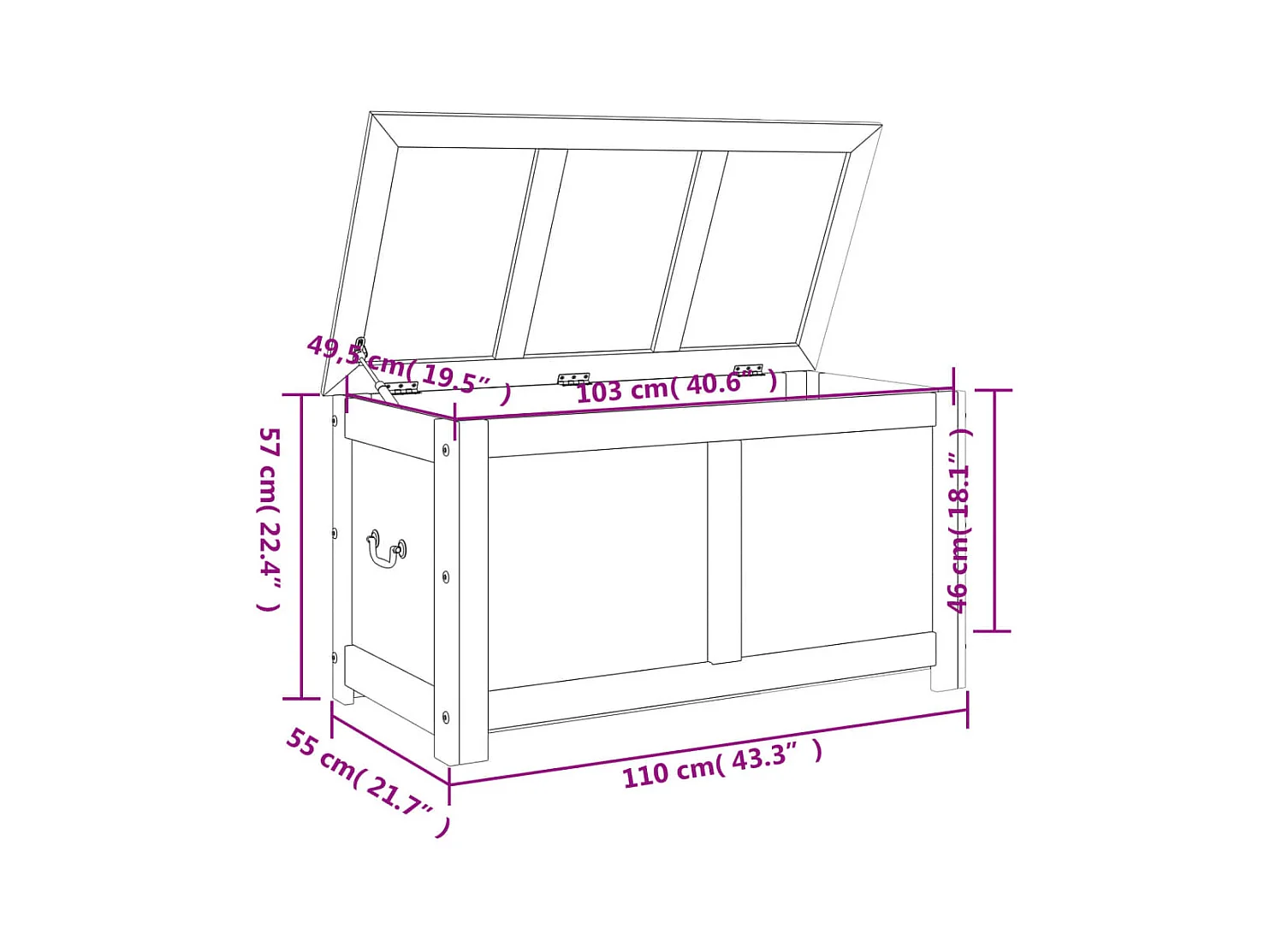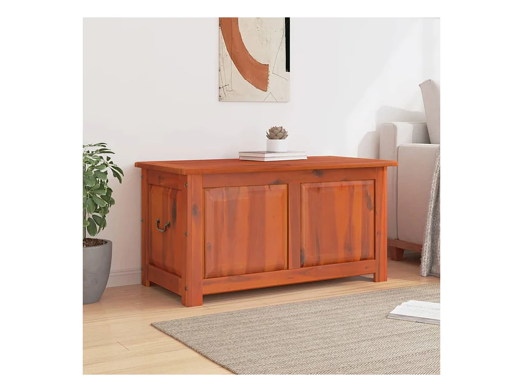 Coffre de rangement avec couvercle marron bois massif d'acacia