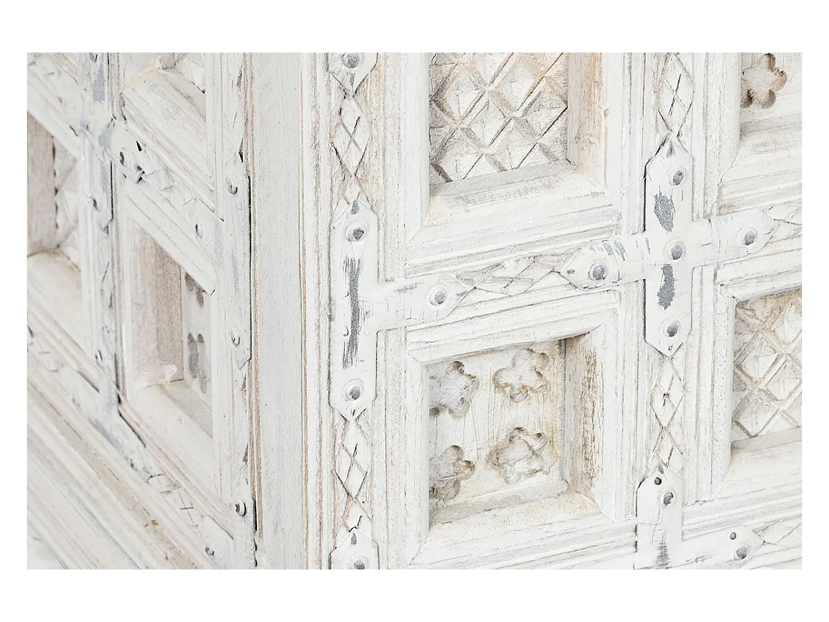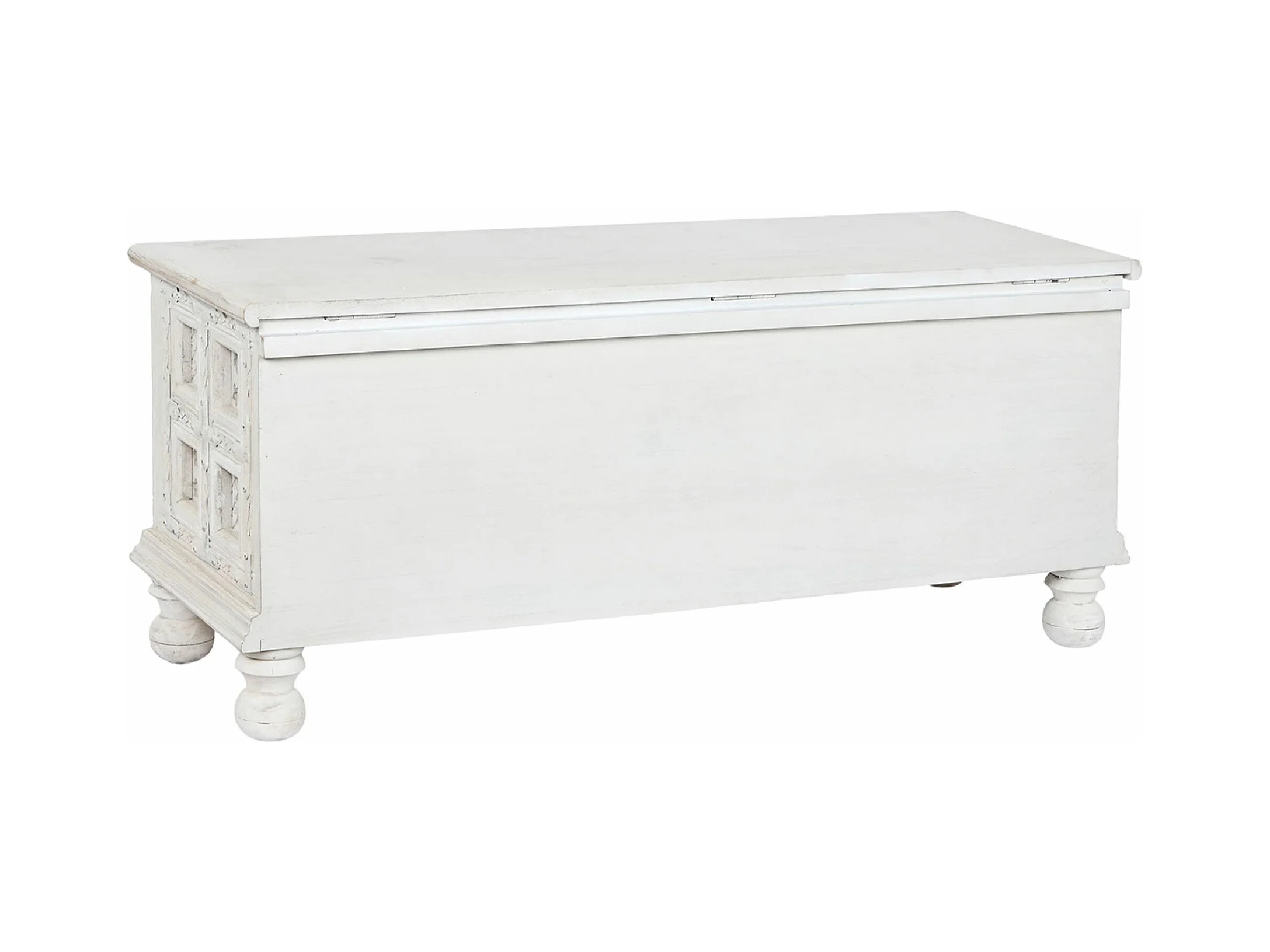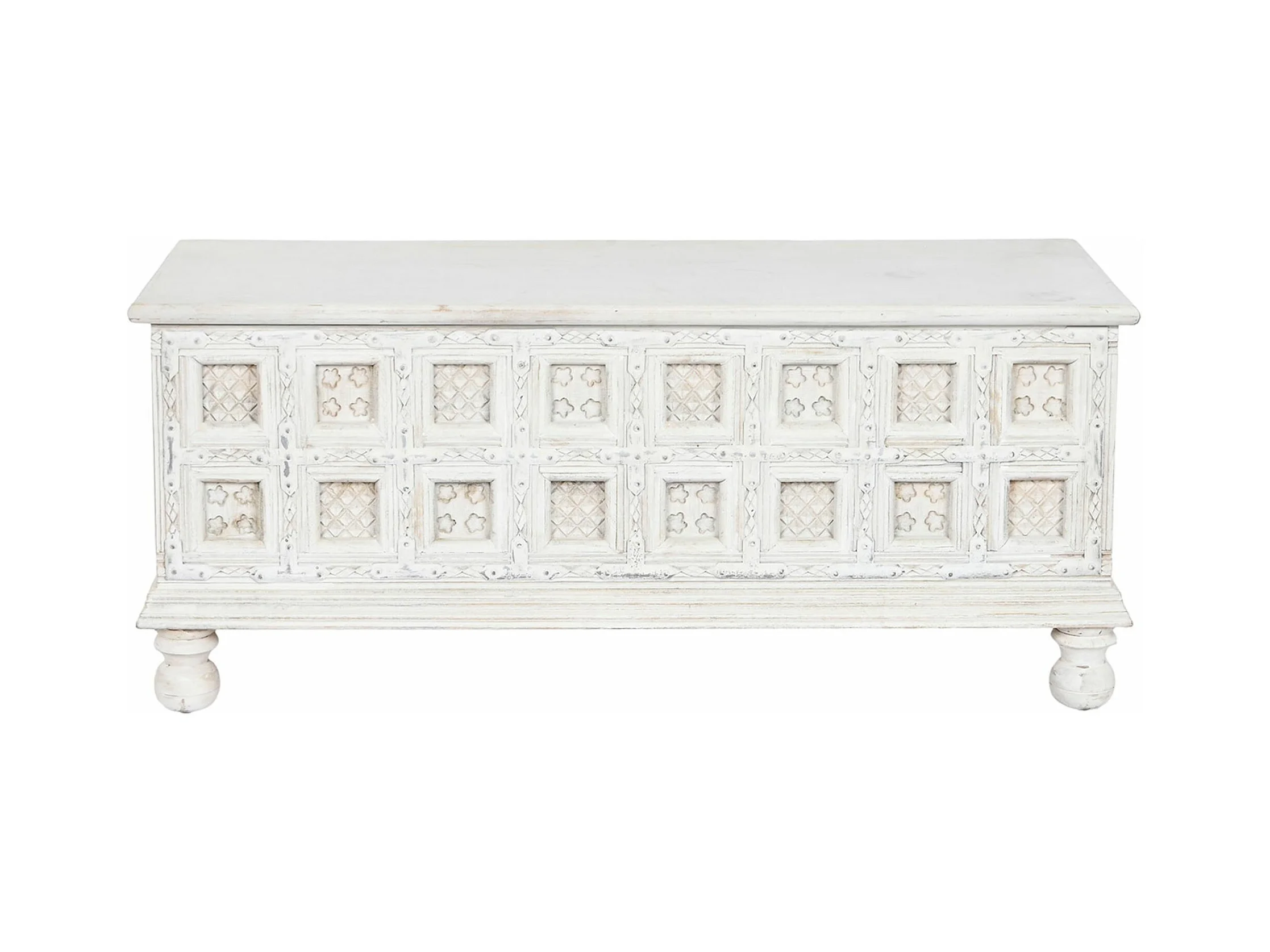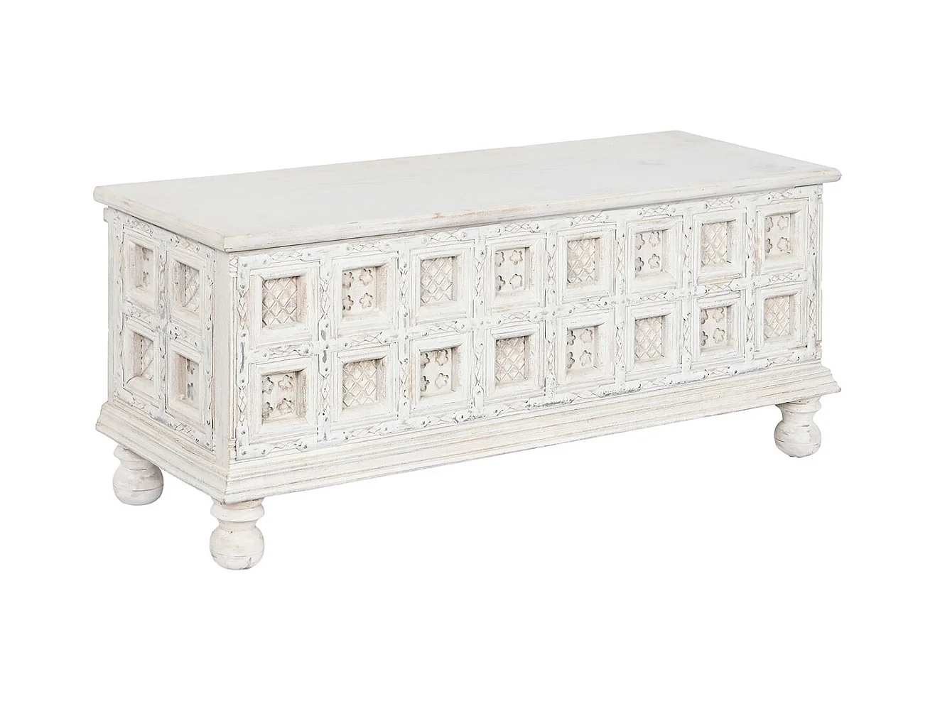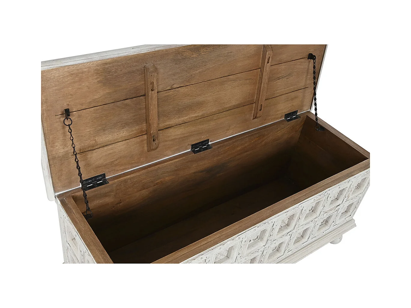 Coffre de rangement en bois de manguier coloris blanc - longueur 110 x profondeur 40 x Hauteur 48 cm