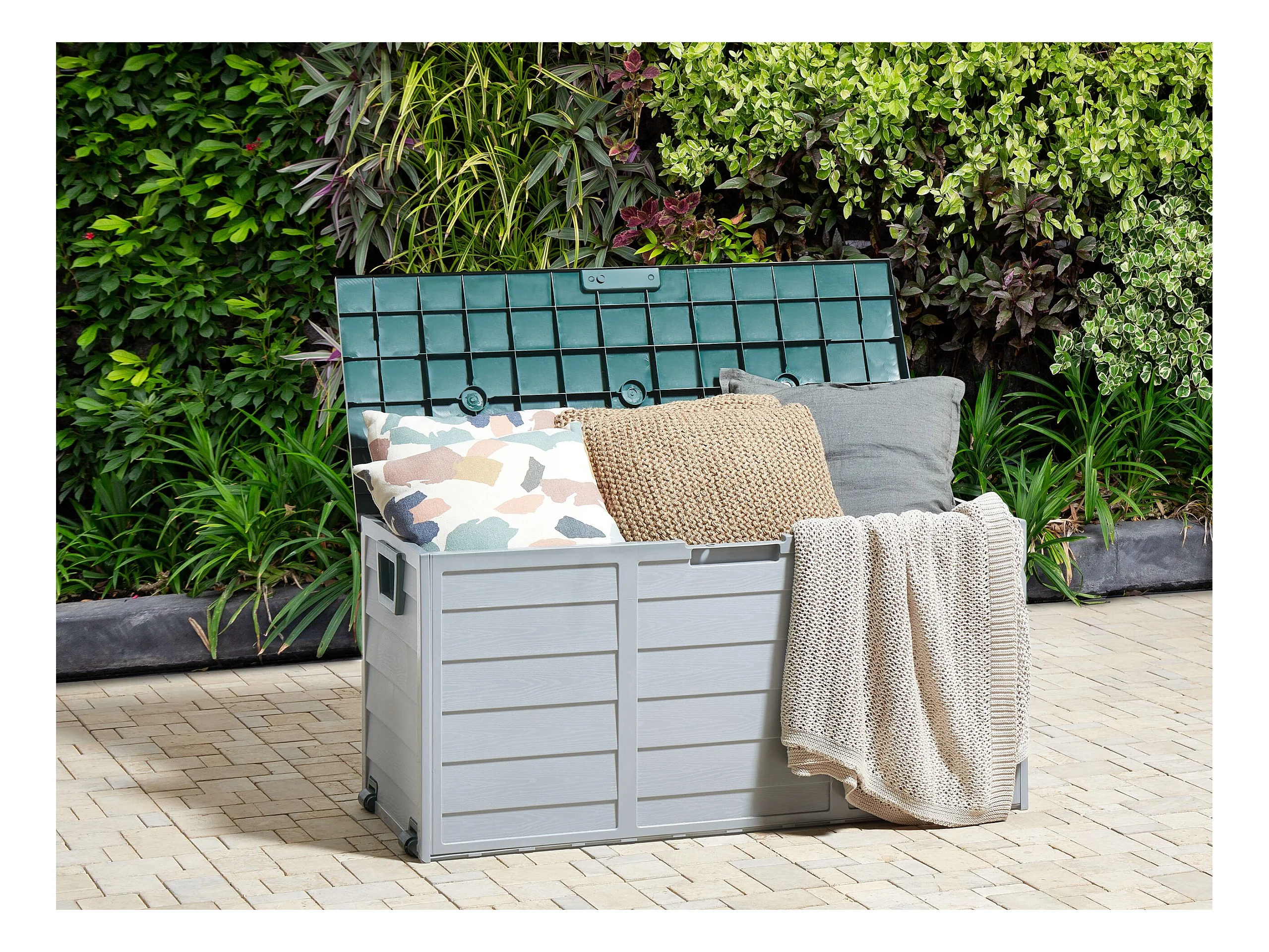 Dorian Boîte de rangement de jardin gris 283L résine tressée