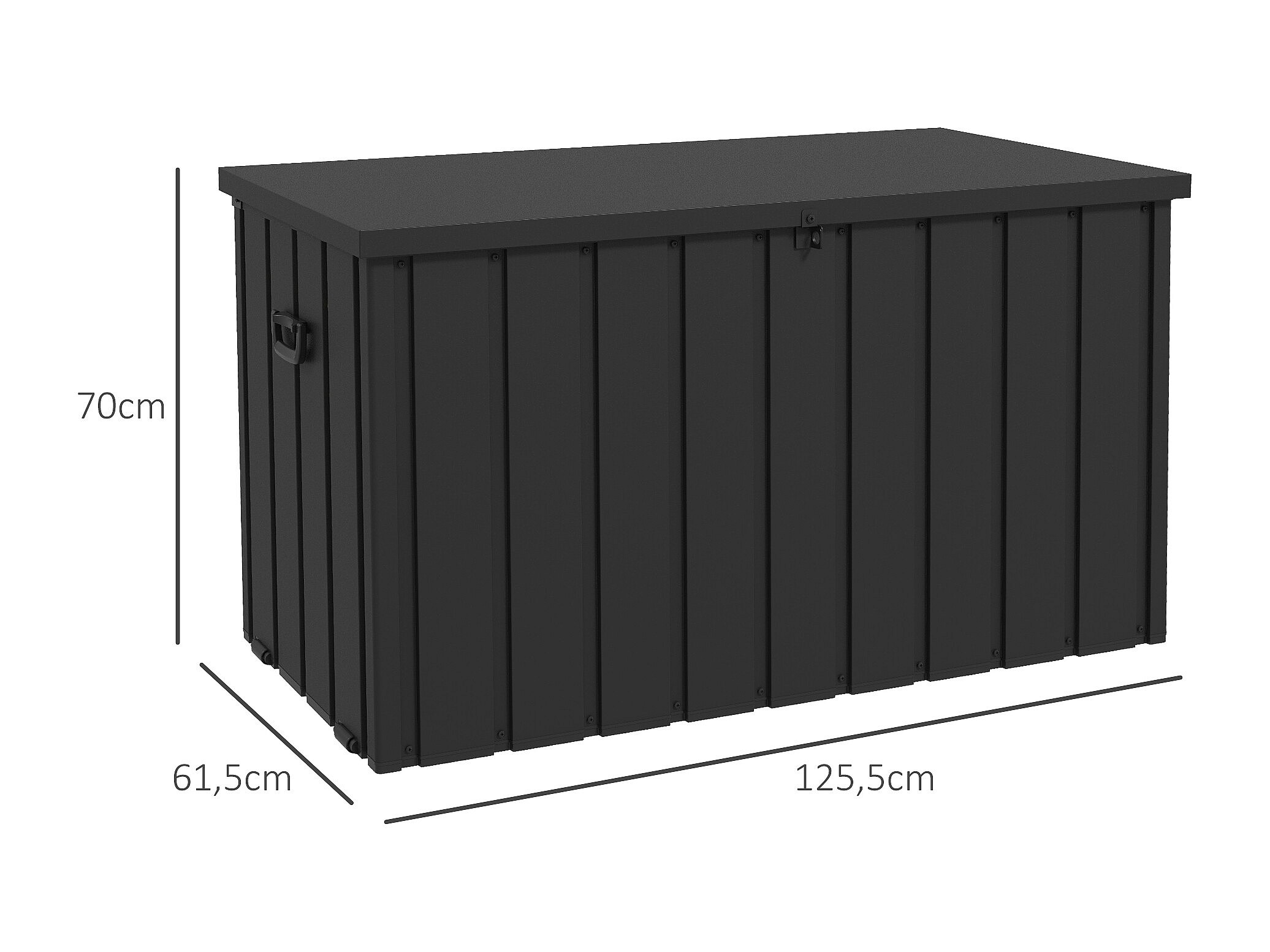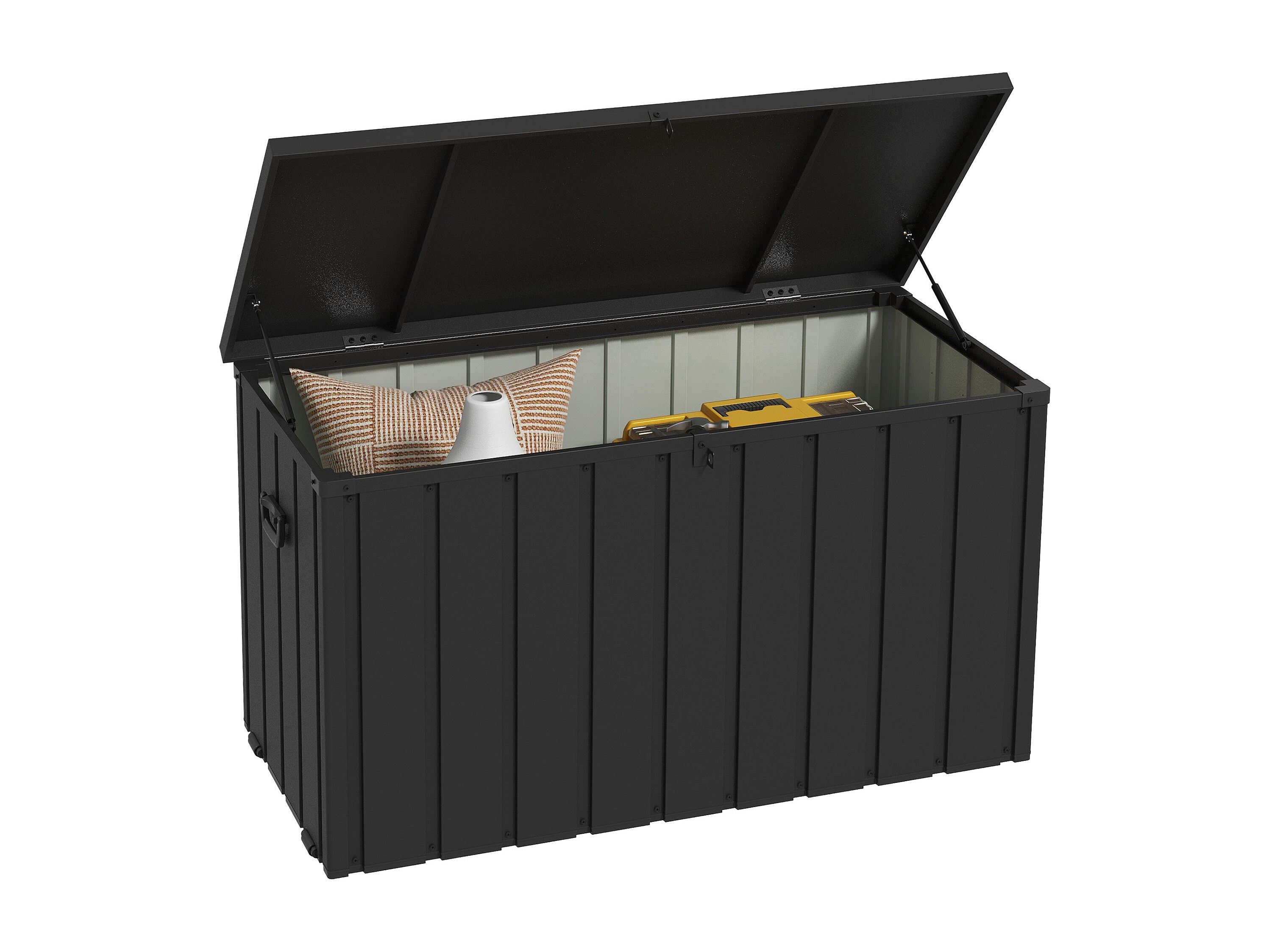 Coffre de rangement jardin capacité 450L - vérin à gaz, roulettes, poignée - acier PP anthracite