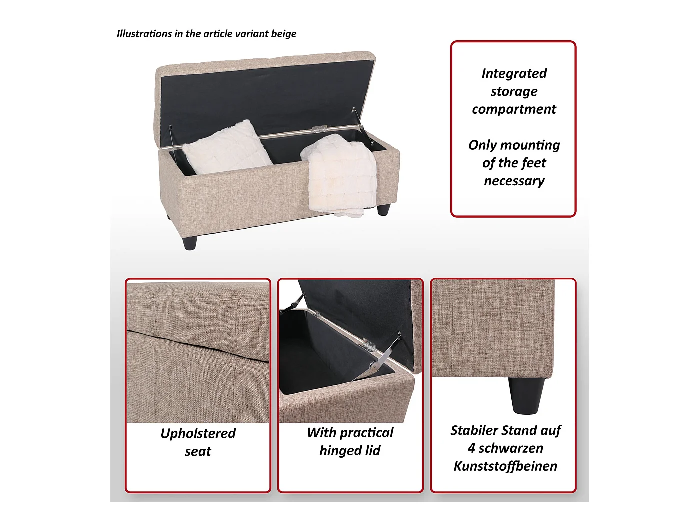 Coffre de rangement Kriens, banc, tissu/textile, 45x114x45cm - gris foncé
