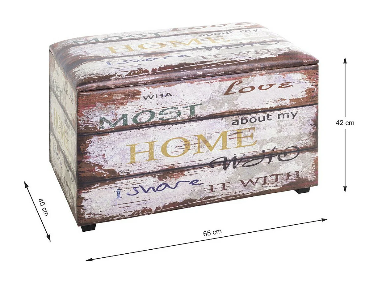 Coffre de Rangement Vintage "Mots" 65cm Marron