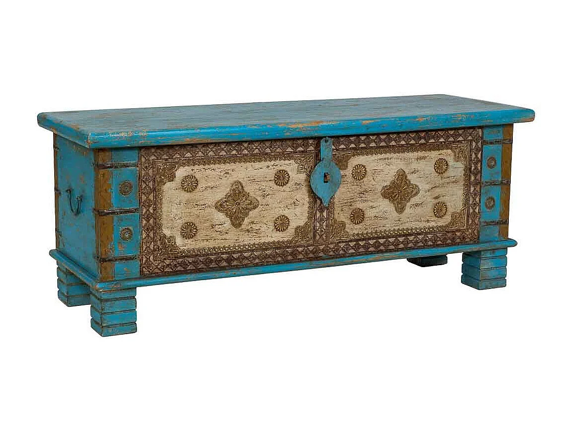 Coffre en bois bleu fait main 115 x 40 x 45 cm (hauteur)