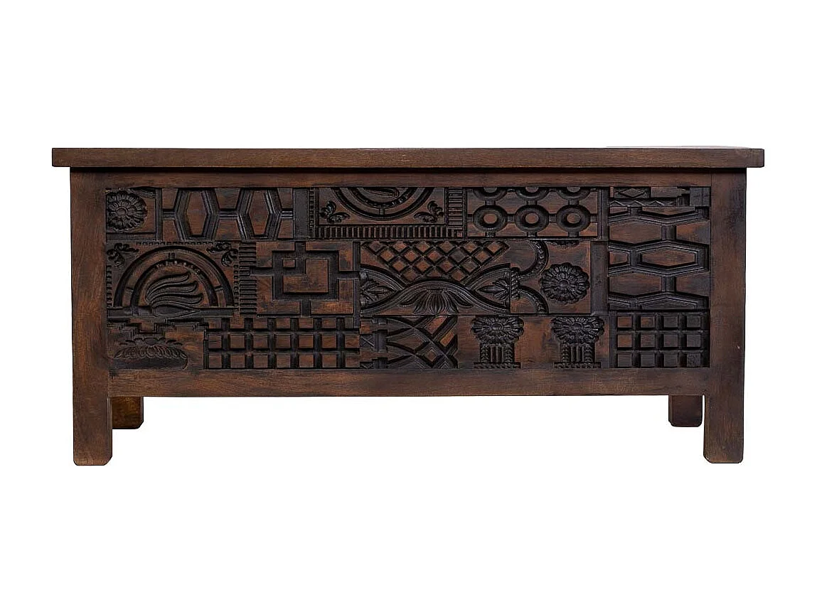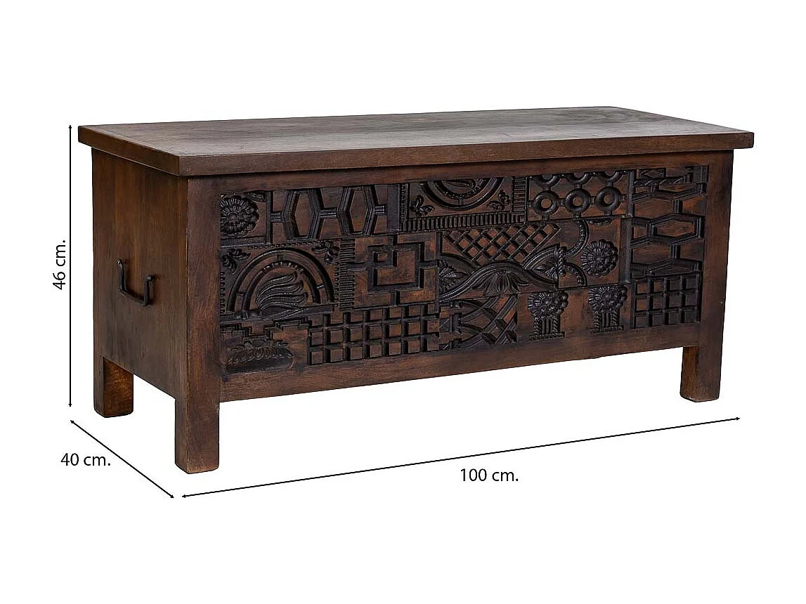 Coffre en bois brun sculpté à la main 100 x 40 x 46 cm (hauteur)