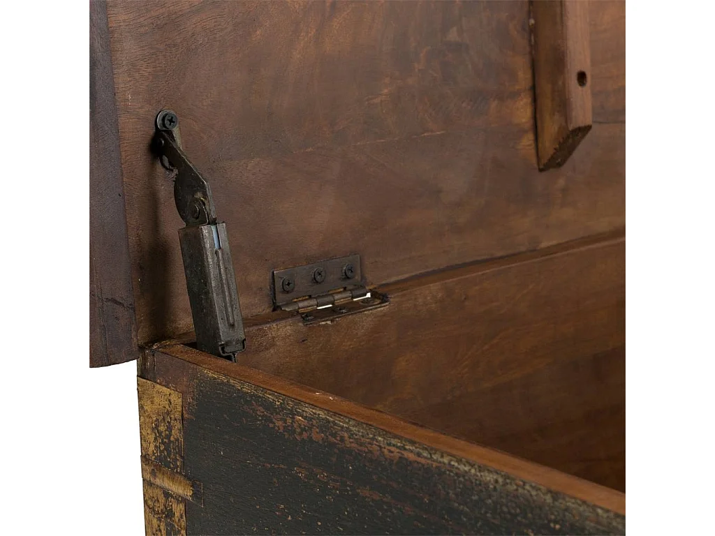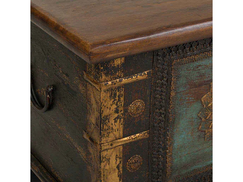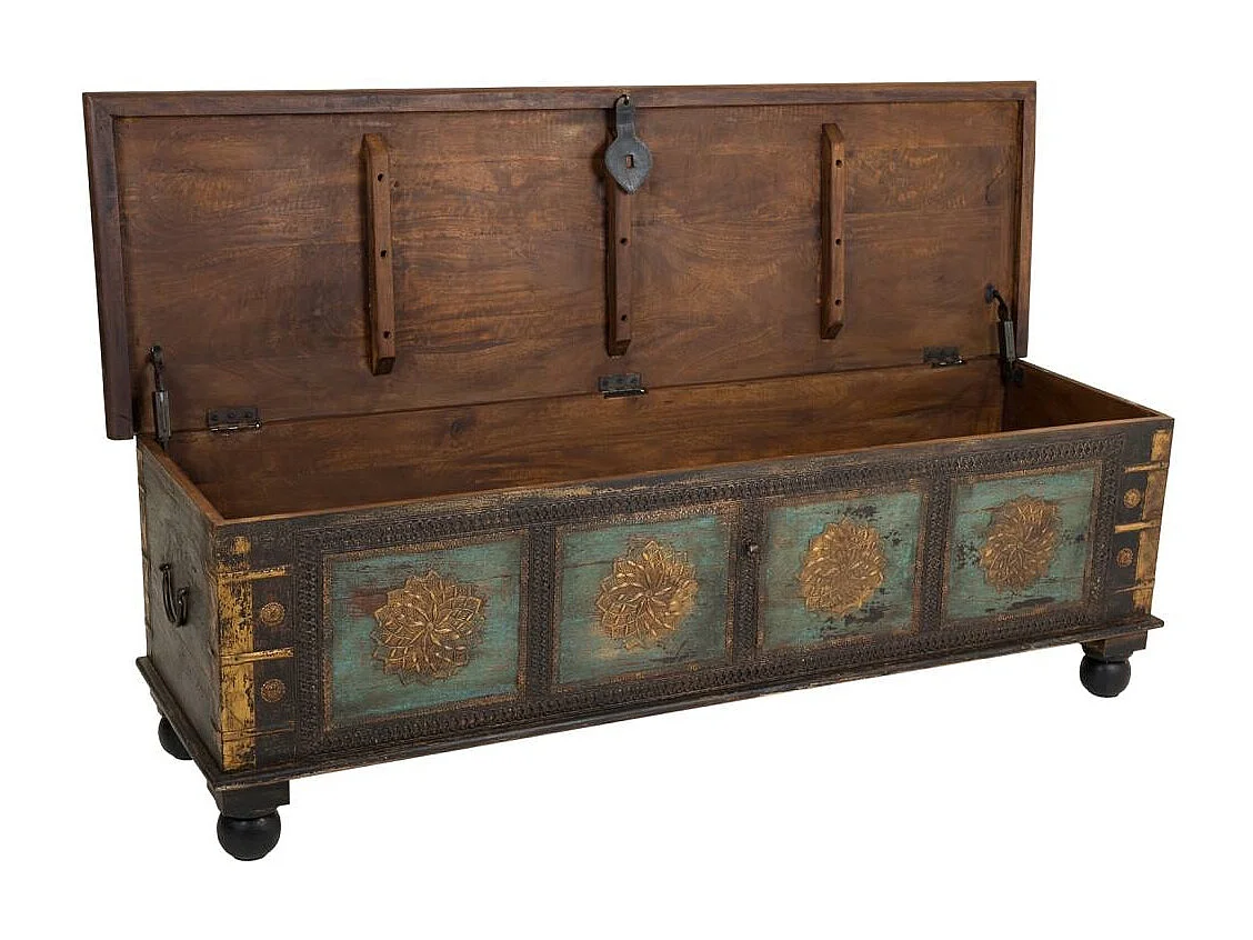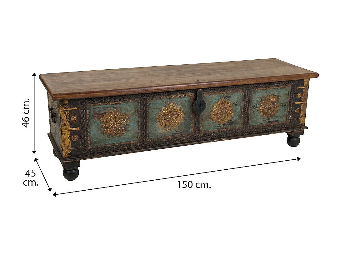 Coffre en bois sculpté artisanal, 150 x 45 x 46 cm hauteur