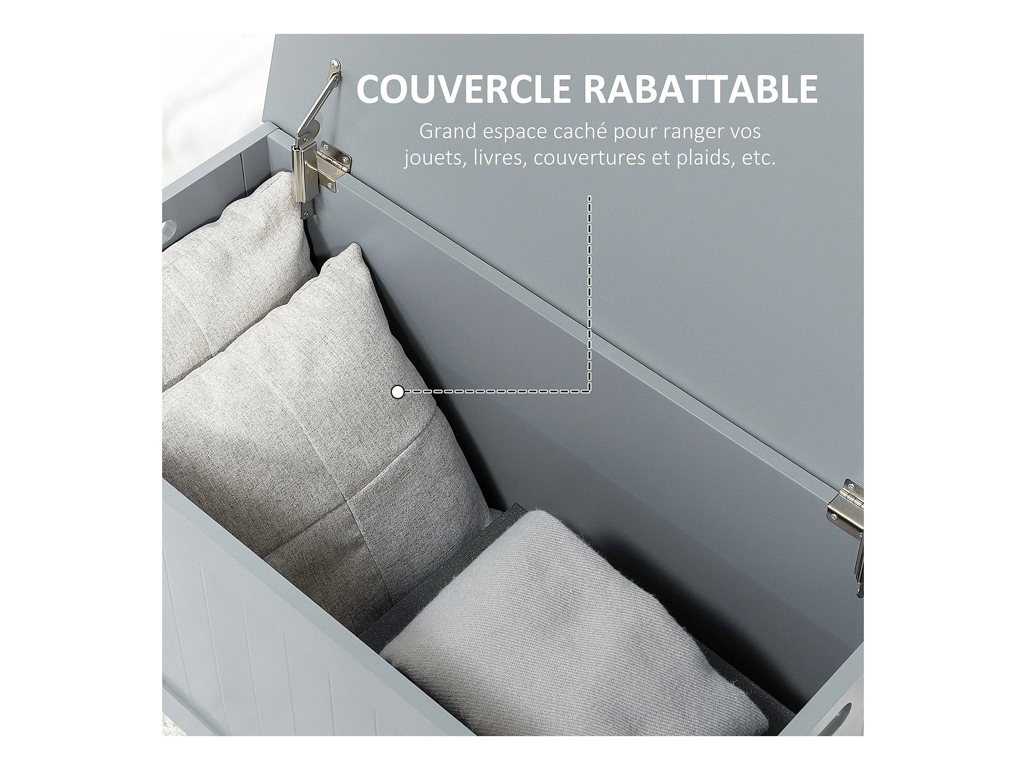 Coffre malle de rangement 81L x 40l x 46H cm MDF gris