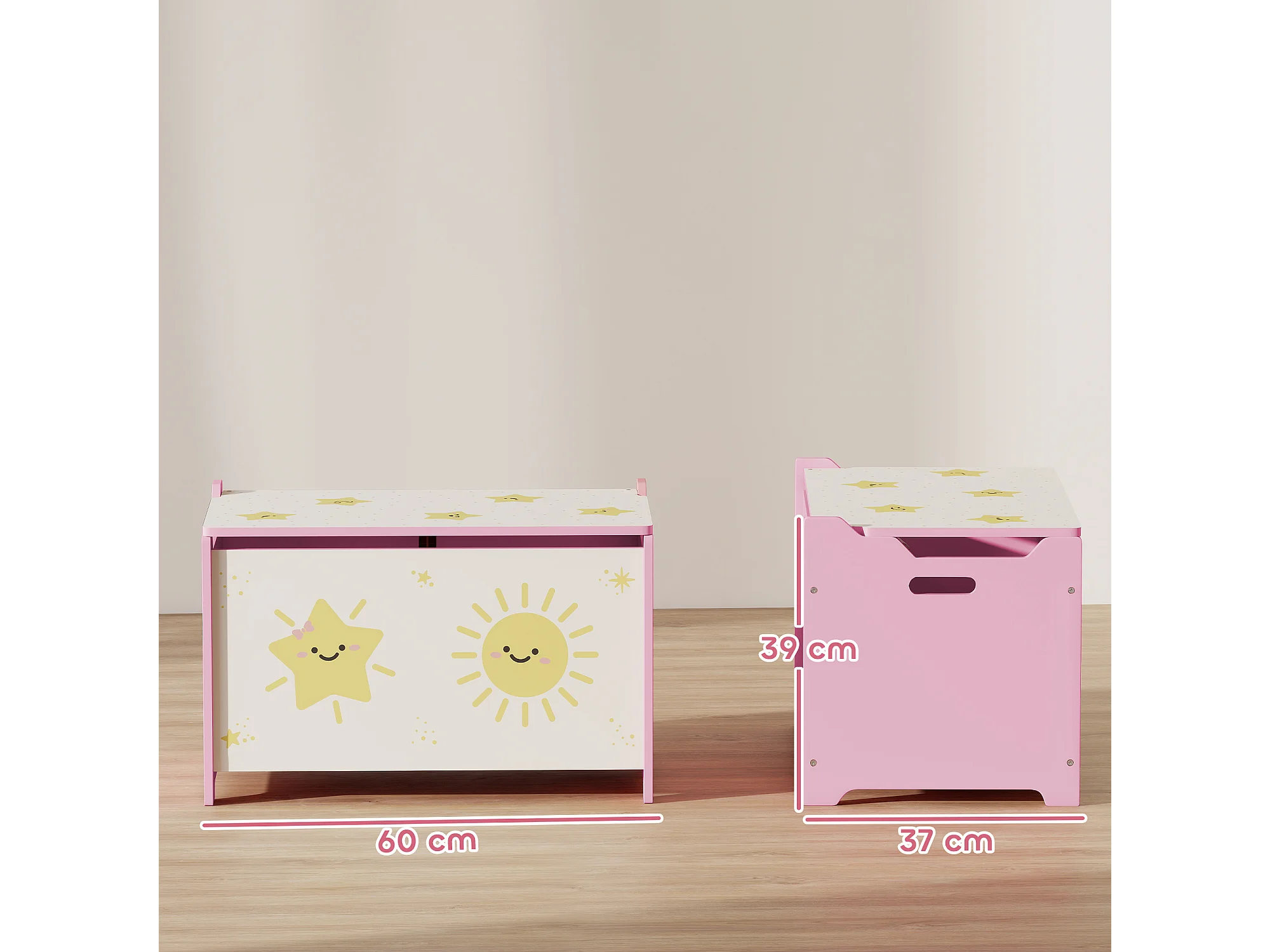 Coffre malle de rangement coffre à jouets design soleil et étoile dim. 60L x 37l x 39H cm vérin pneumatique MDF rose