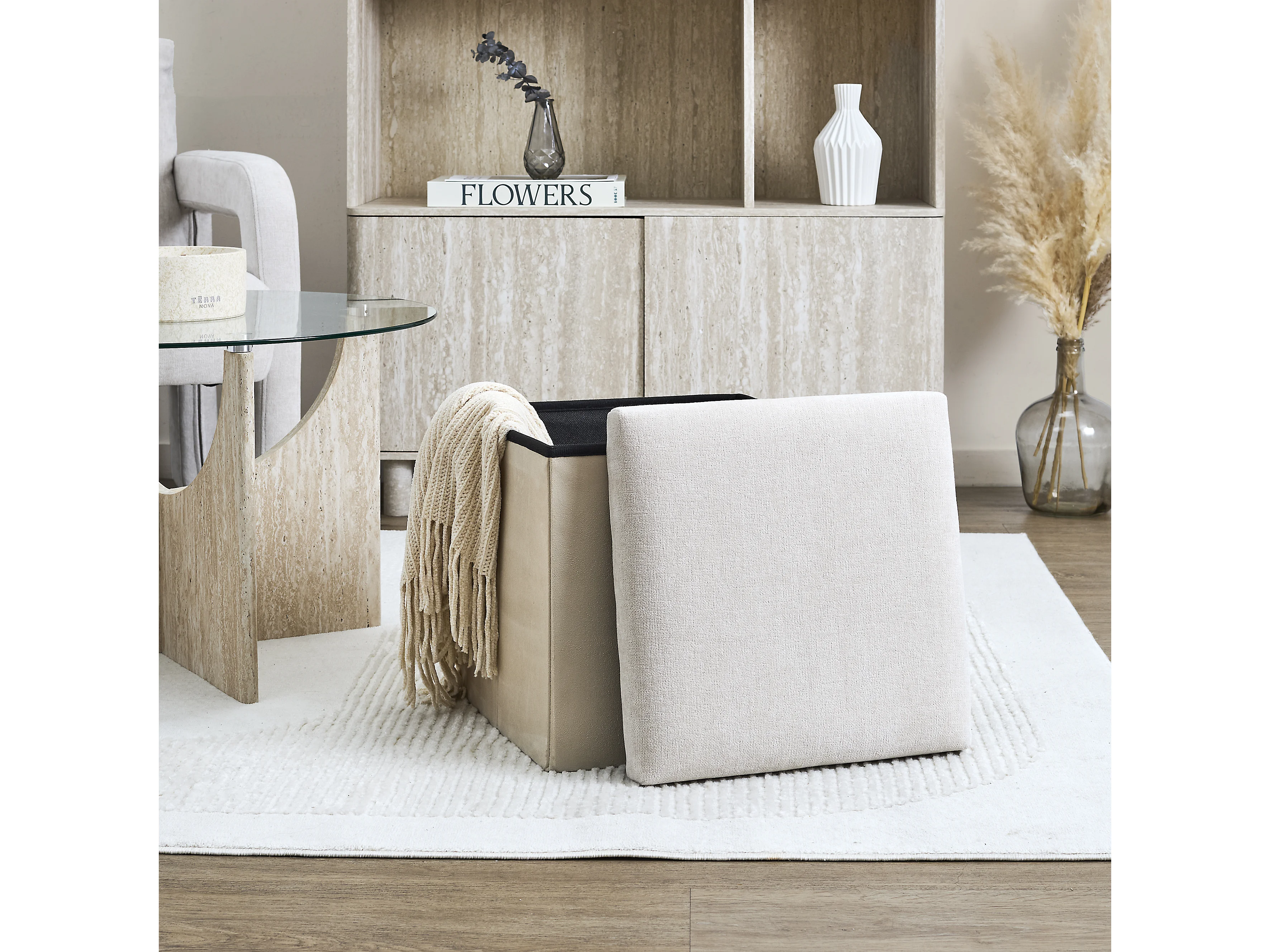 Coffre Pouf Pliable Emilia Beige Beige