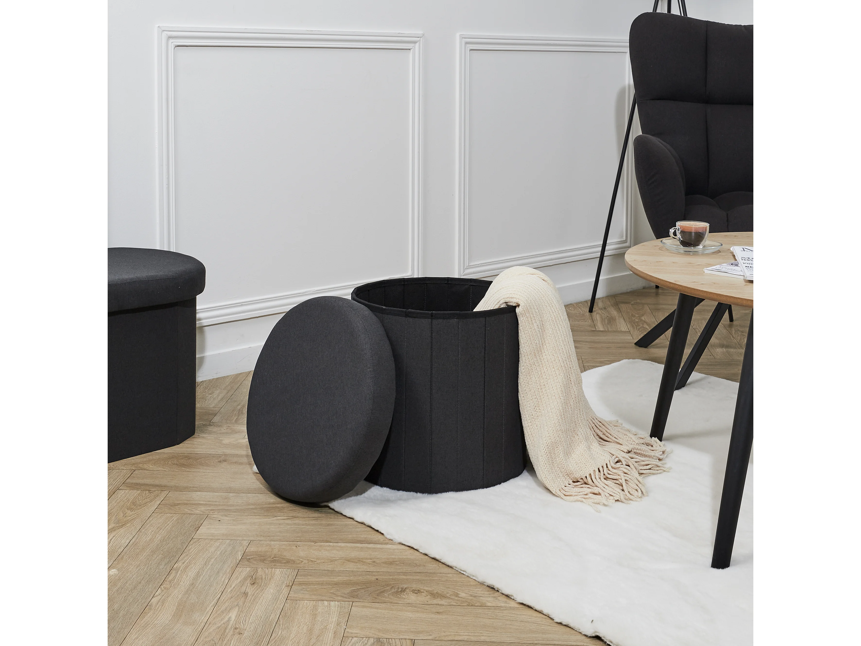 Coffre Pouf Pliable Noir Pills Noir