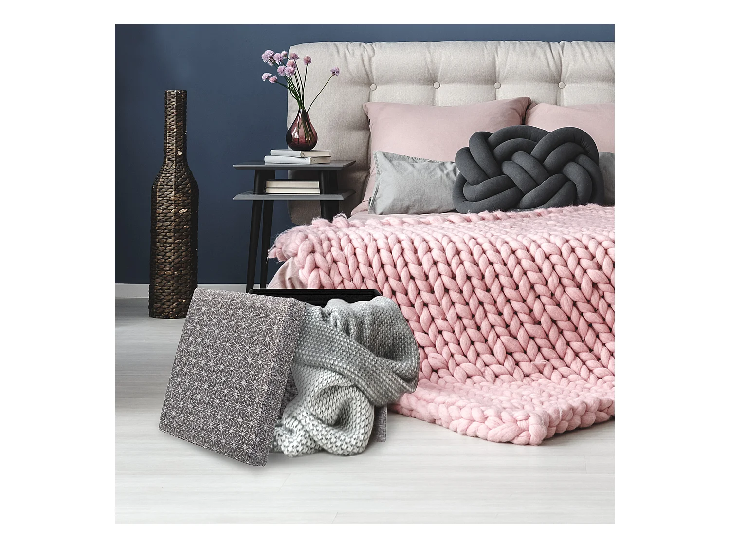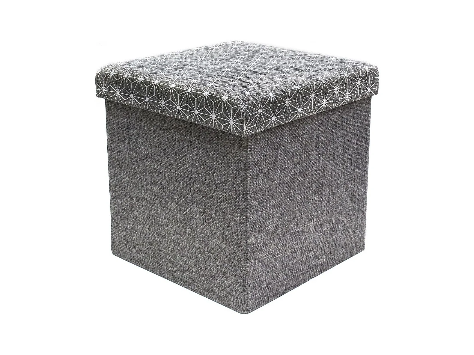 Coffre Pouf Pliable Gris Motif Blanc Gris