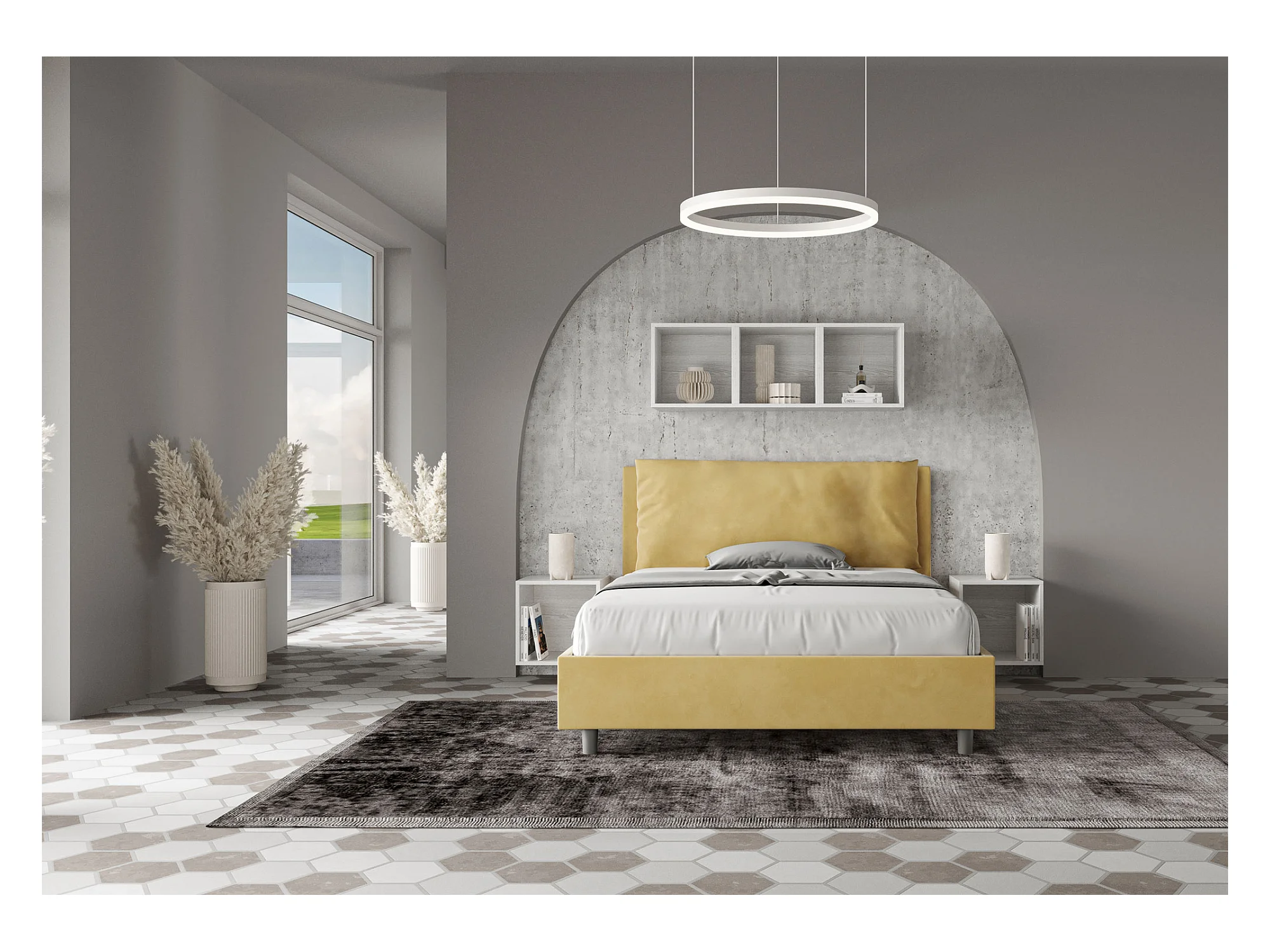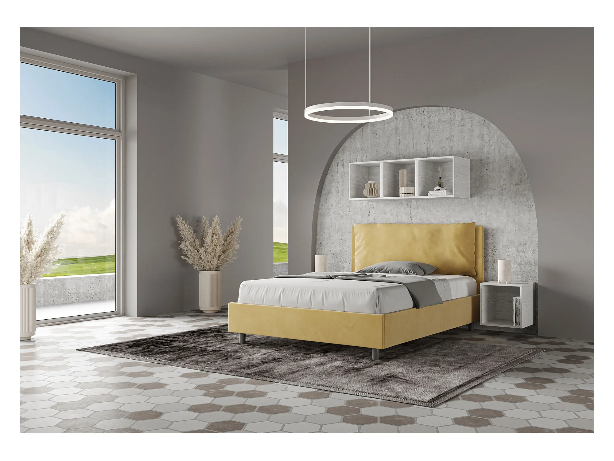 coffre rembourré 140x190 microfibre ocre Antea Large