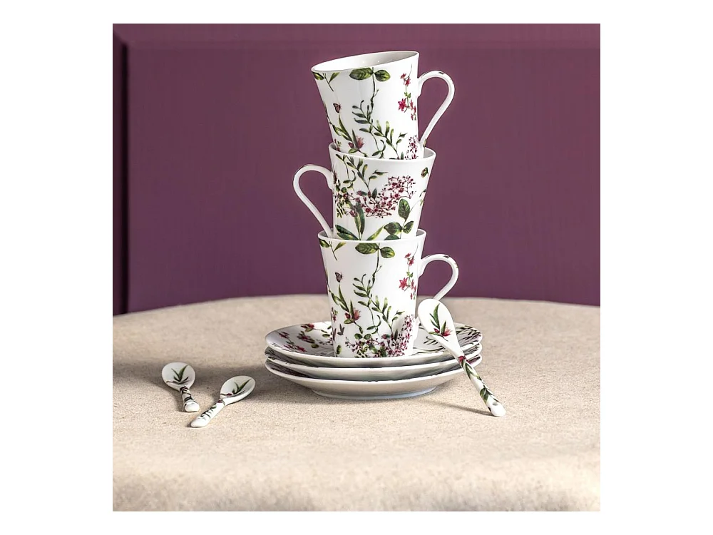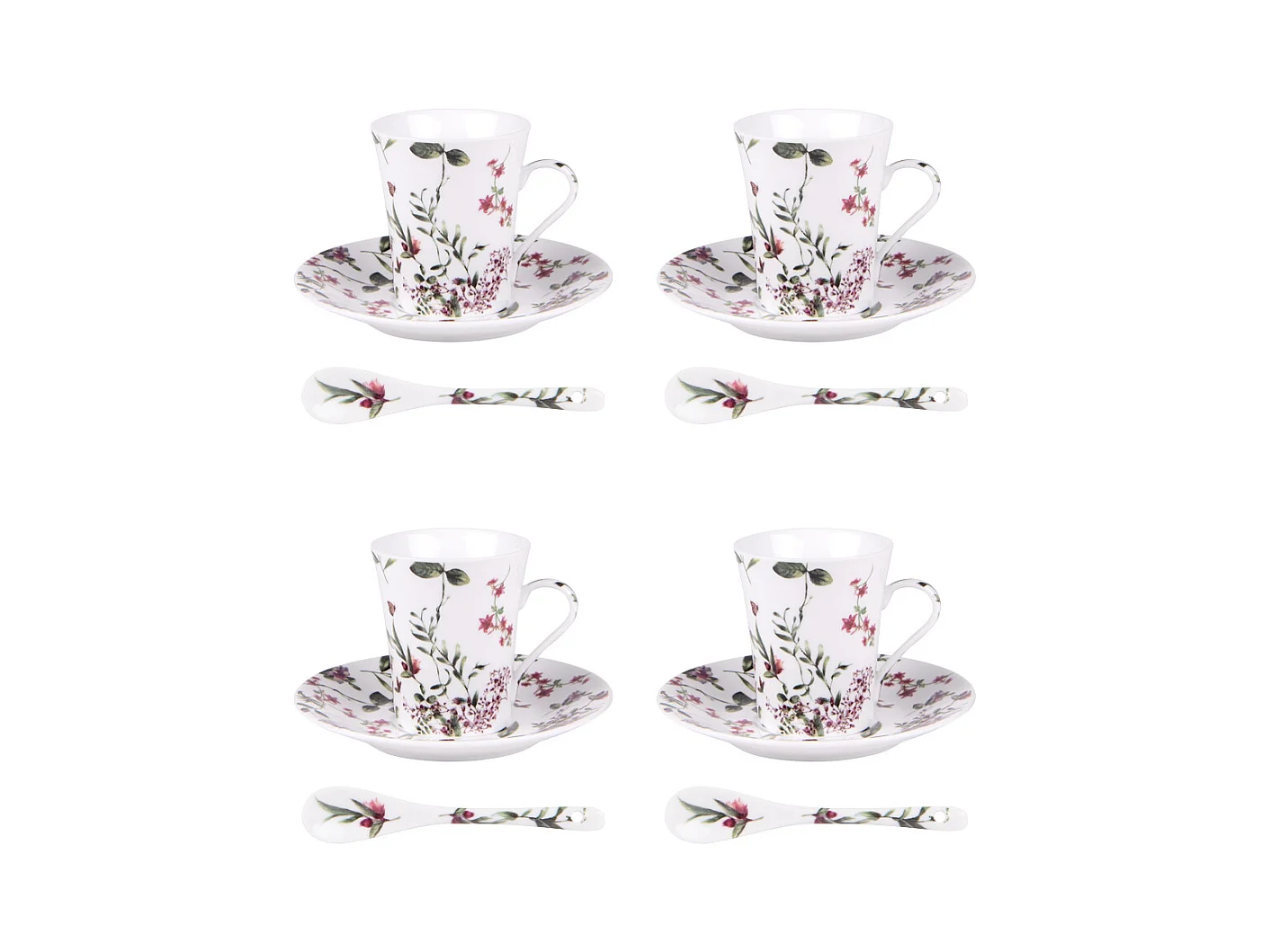 Coffret 4 pièces champêtre avec sous tasses et cuillère 16 cl