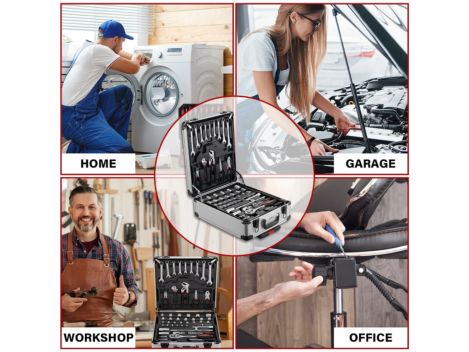 Coffret à Outils 1000 Pièces Professionnel - Valise Roulante Aluminium avec Poignée Télescopique et Outils Chrome Vanadium pour Mécanique