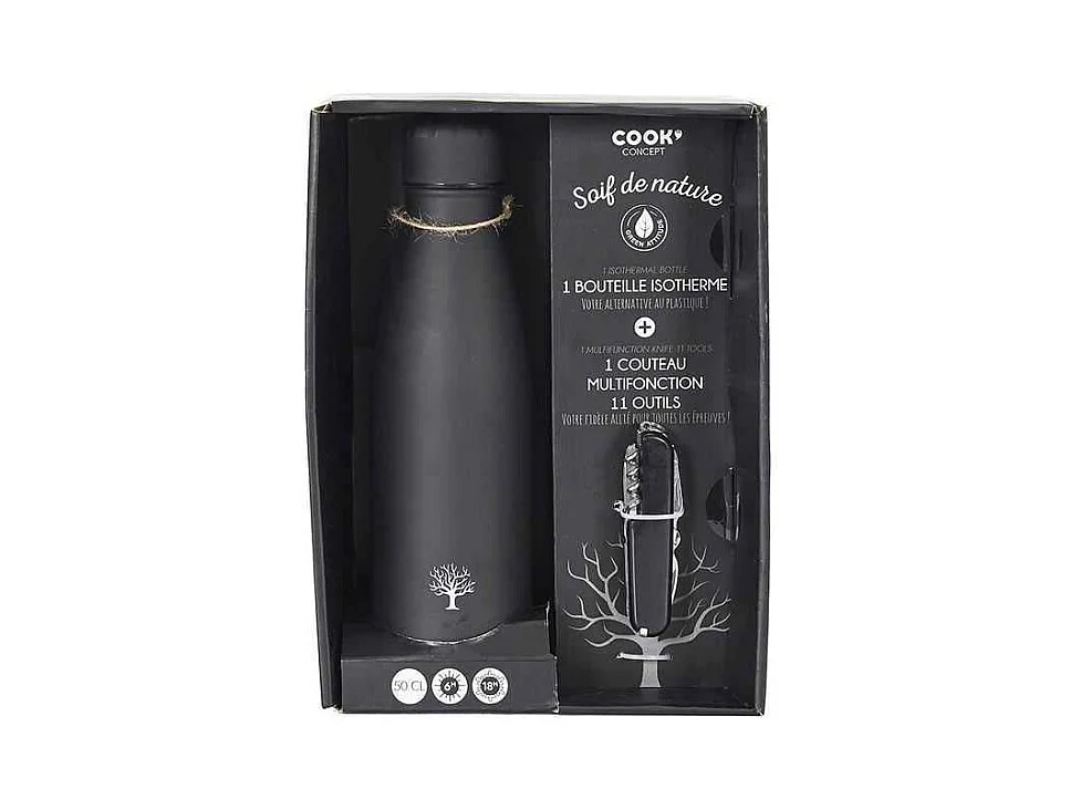 Bouteille Isotherme Couteau Multiusage Coffret Noir