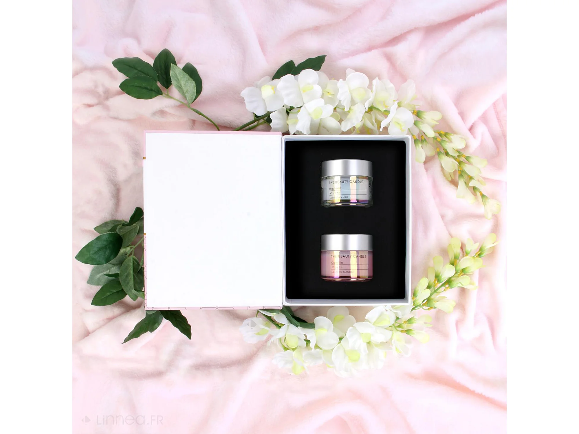 Coffret cadeau 2 bougies senteurs fleurs de printemps LEONIE rose
