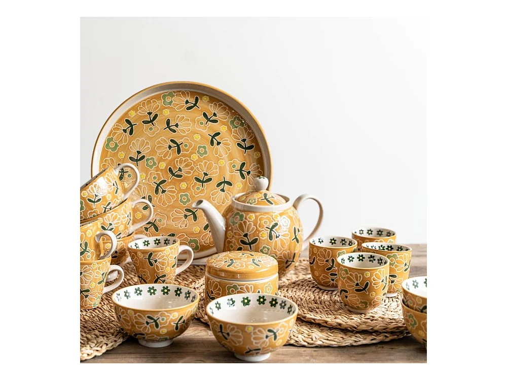 Ogo Living - Tisaniere Juliet 300ml En Gres Jaune Avec Couvercle Bois D'acacia