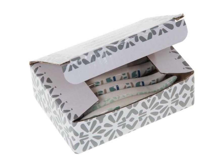 Novastyl - Lot 6 Assiettes Desserts Heraclee 19cm En Gres Decor Bleu
