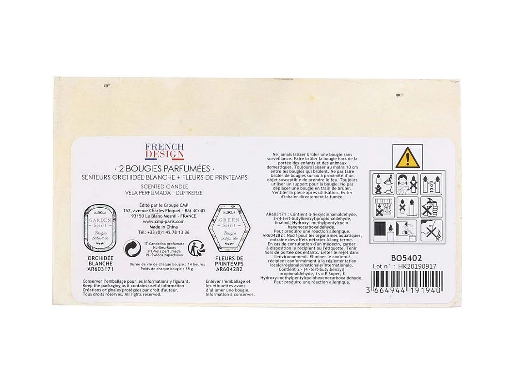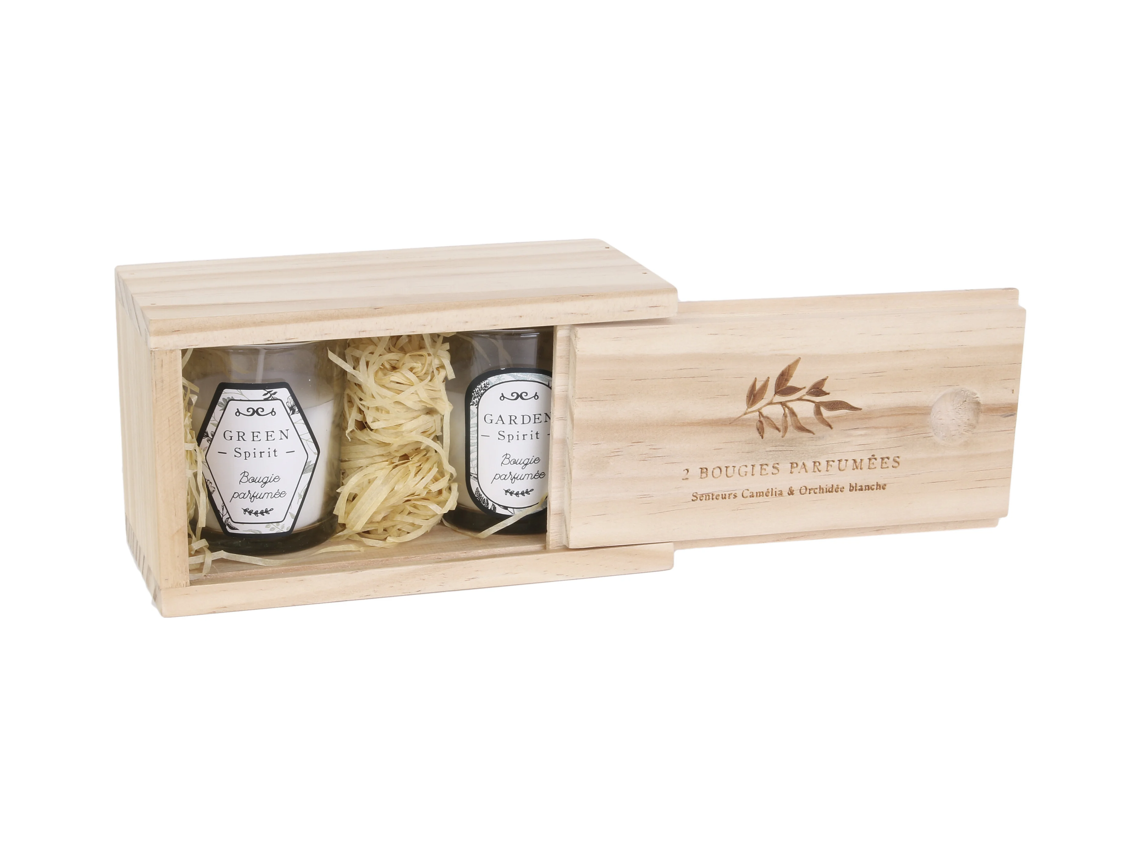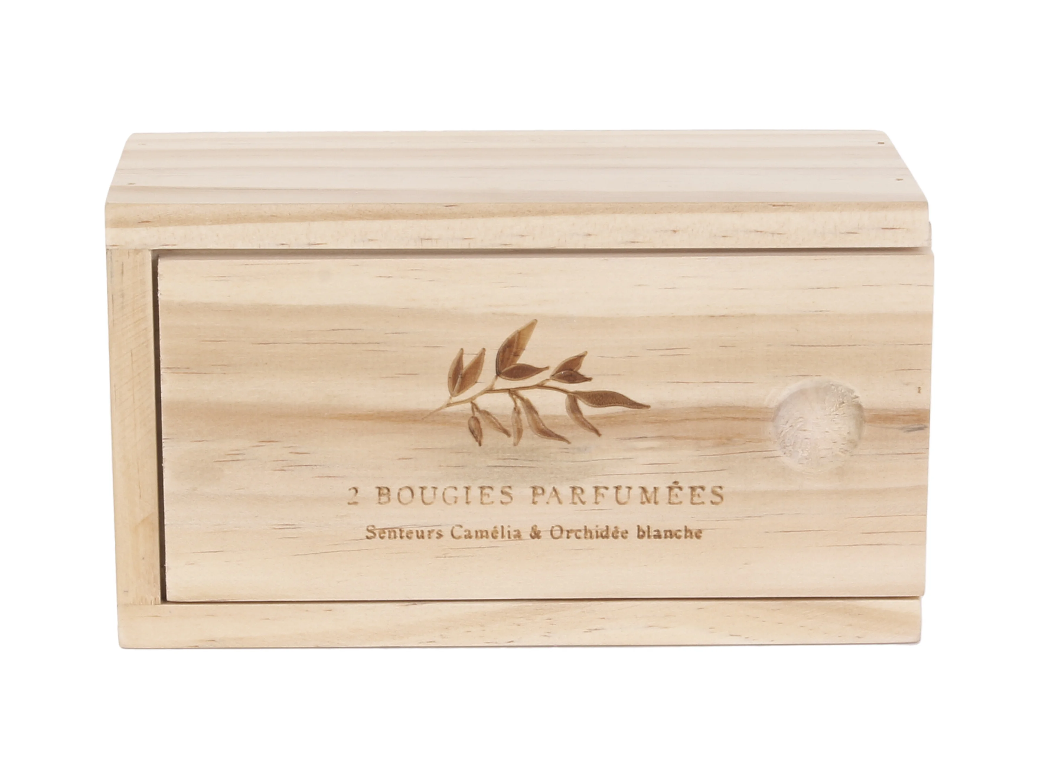 Bougie Parfumee Nature X2 Coffret Bois H6.5cm Blanc, Beige