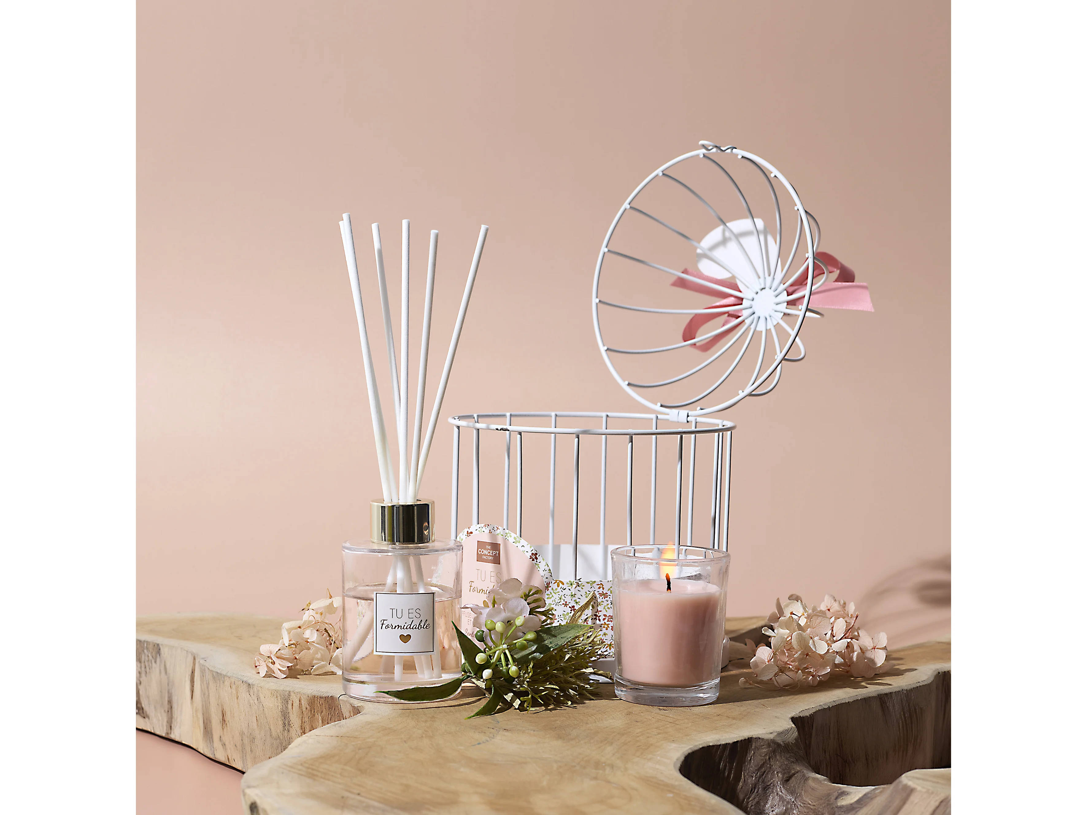 Coffret Senteur Cage Diffuseur Et Bougie Blanc, Rose