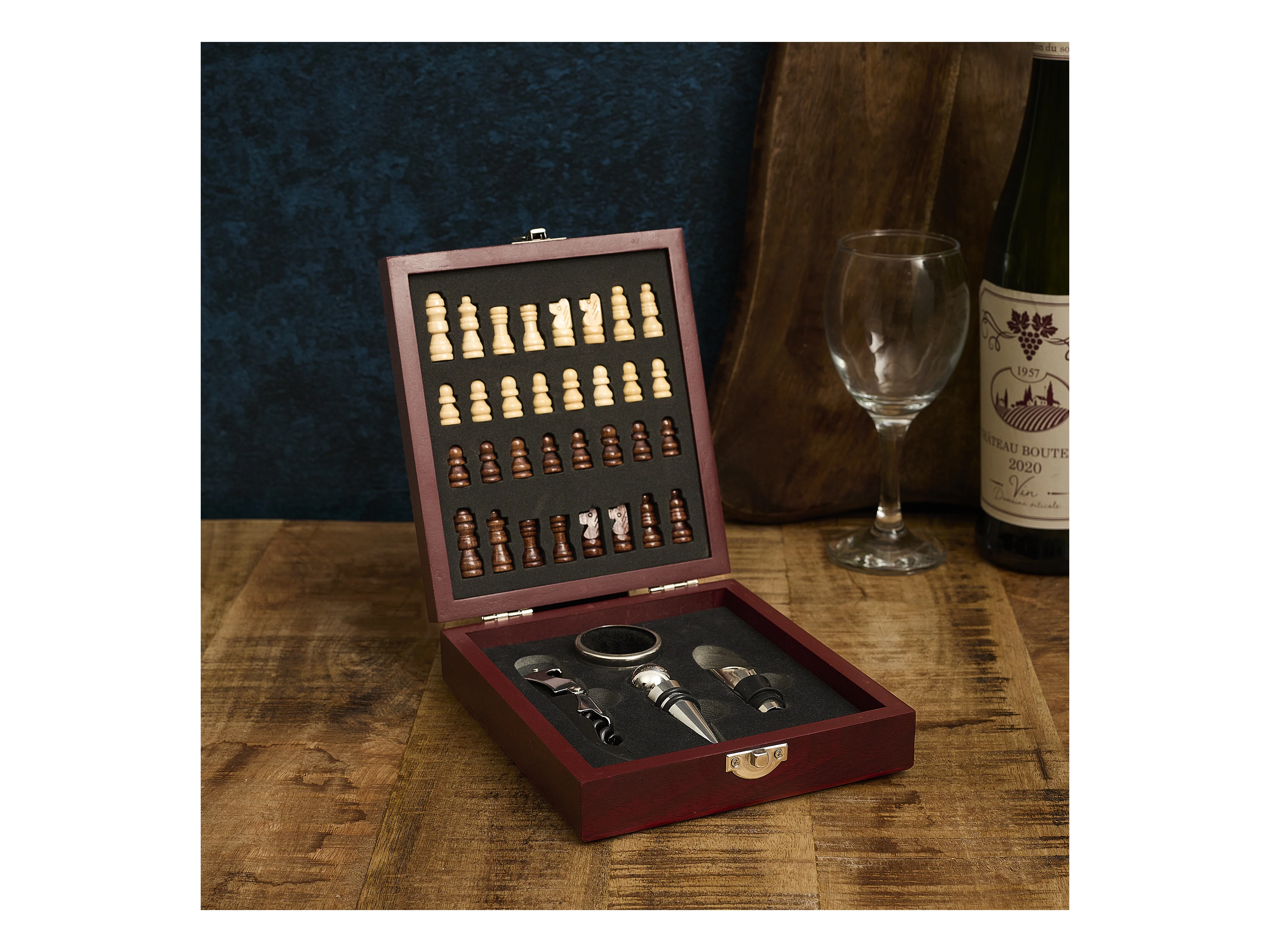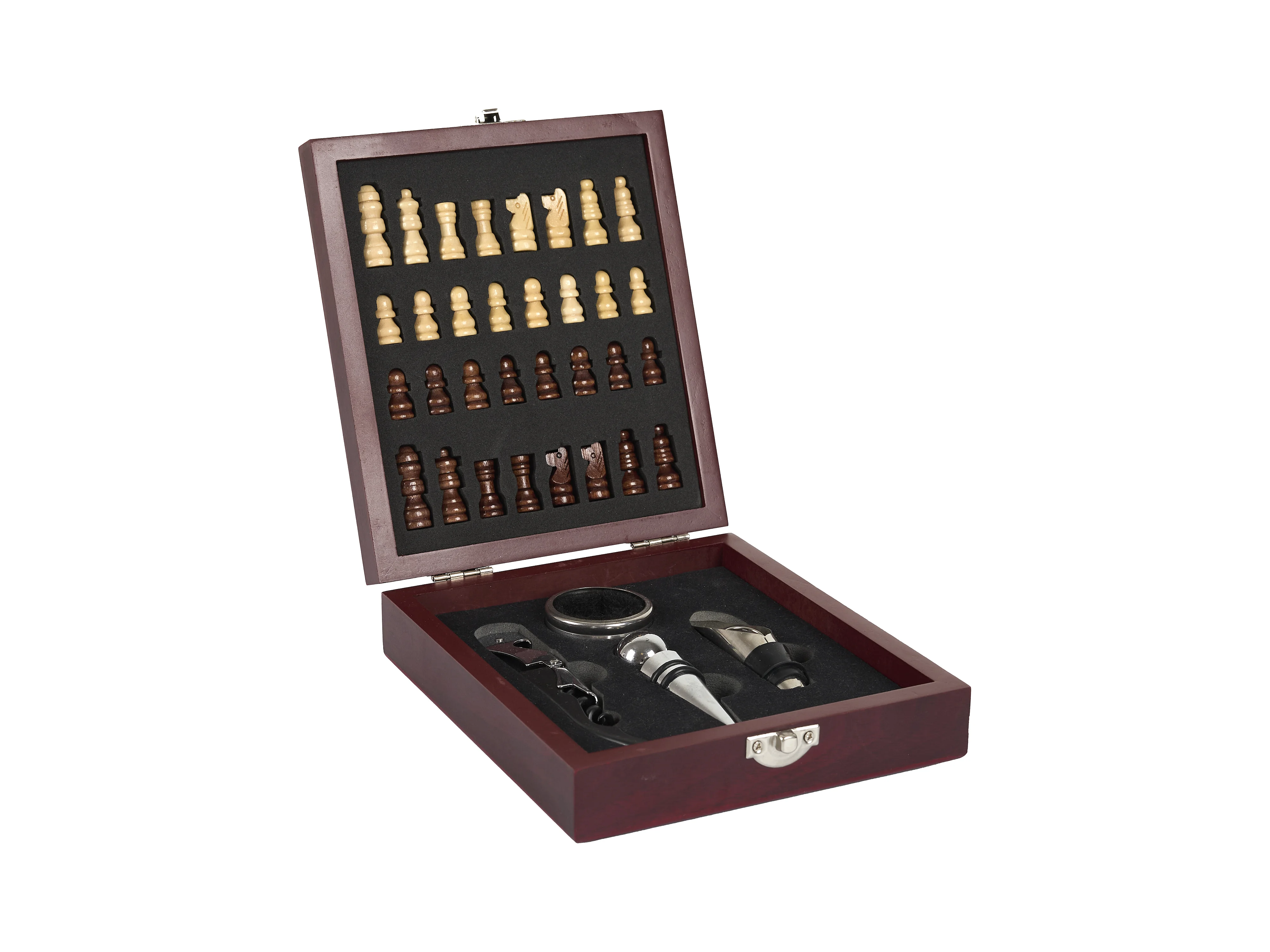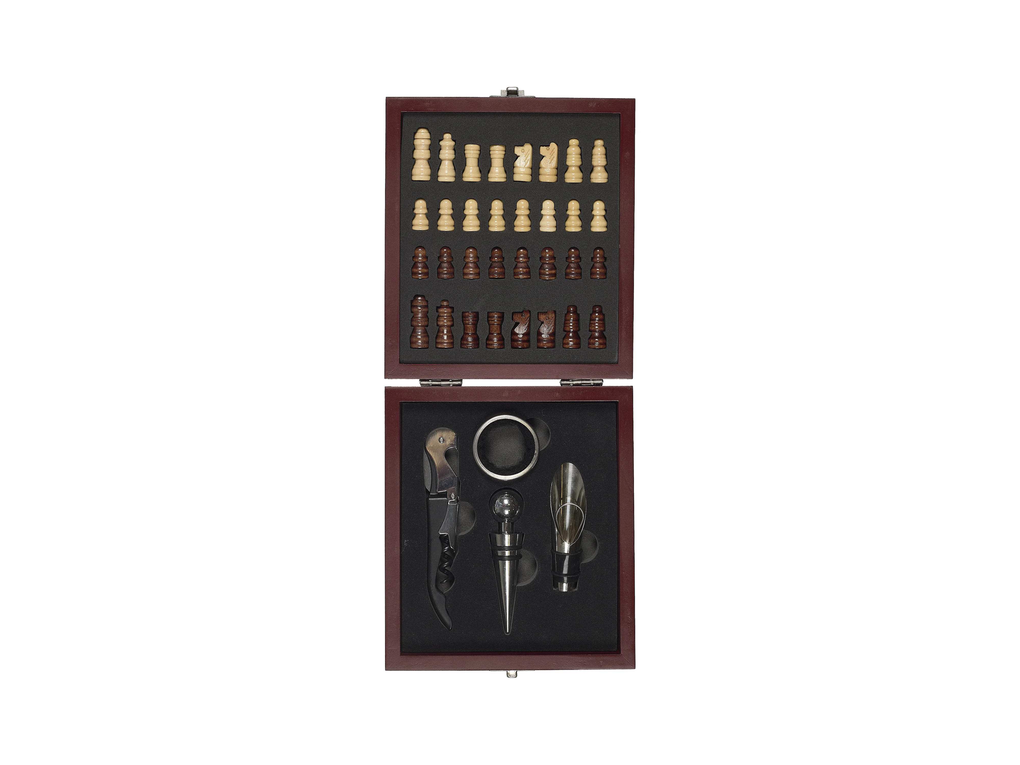 Coffret Vin 4 Pieces Avec Echiquier Marron
